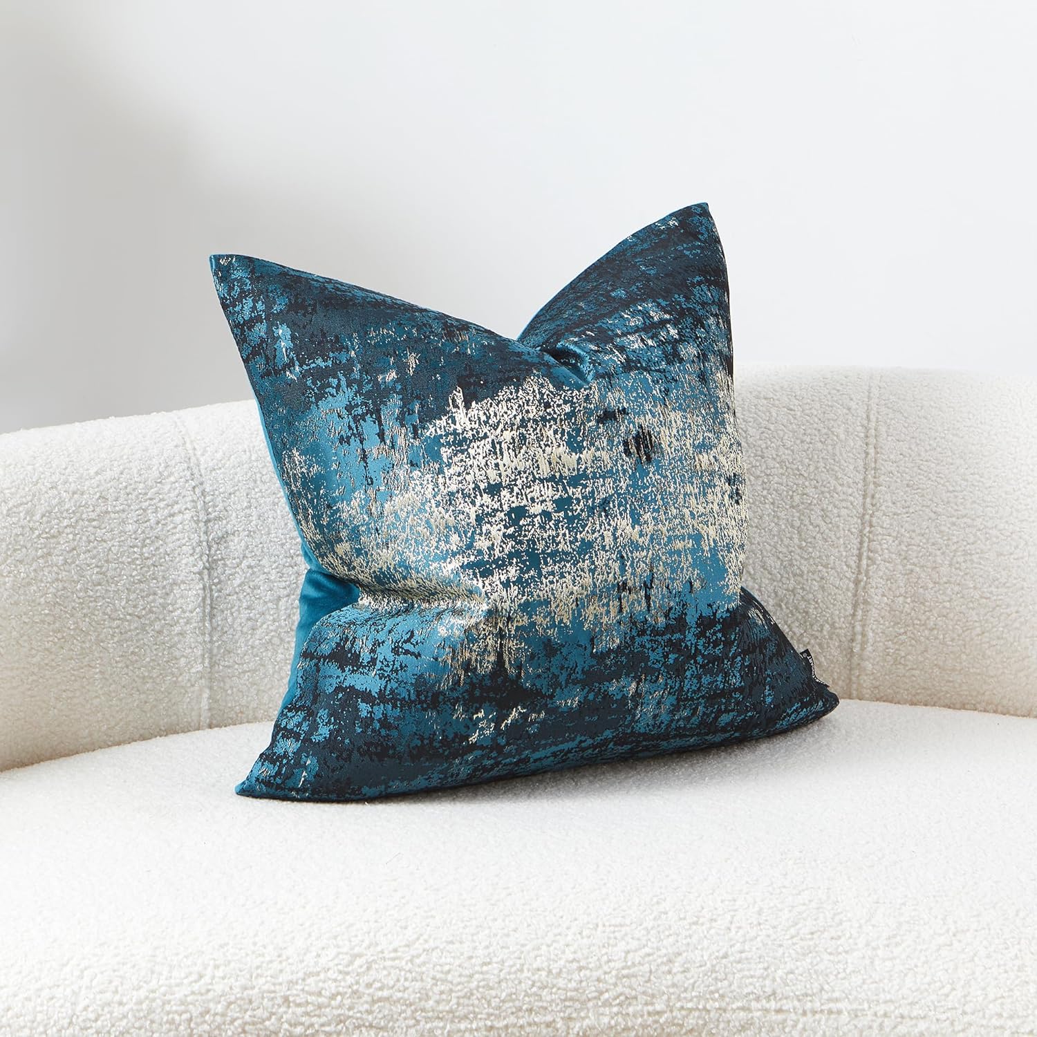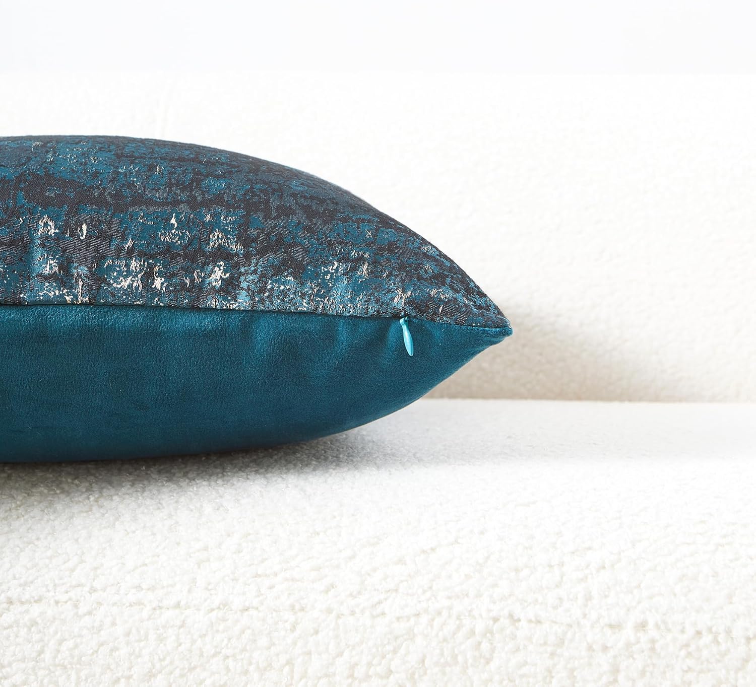 • Premium Jacquard & Velvet Pillow Cover : Crafted with luxe 70% polyester 30% viscose jacquard weave in Teal & Gold - a sophisticated blue-green hue with woven metallic gold threads that create a luminous, jewelry-like glow. The reverse features 100% polyester cream beige velvet in sumptuous cloud-soft texture. Two looks in one-Instantly elevates sofas, beds, or accent chairs from coastal cool to metropolitan glam.