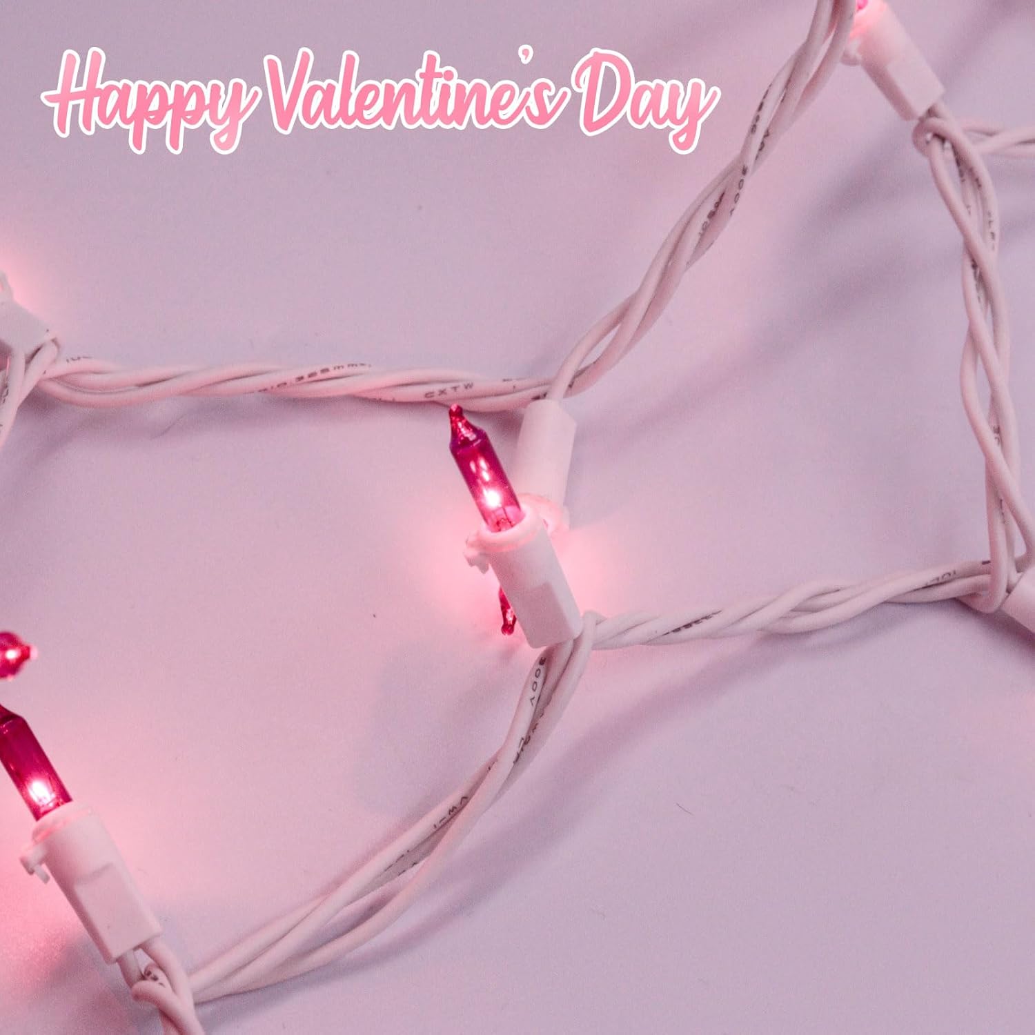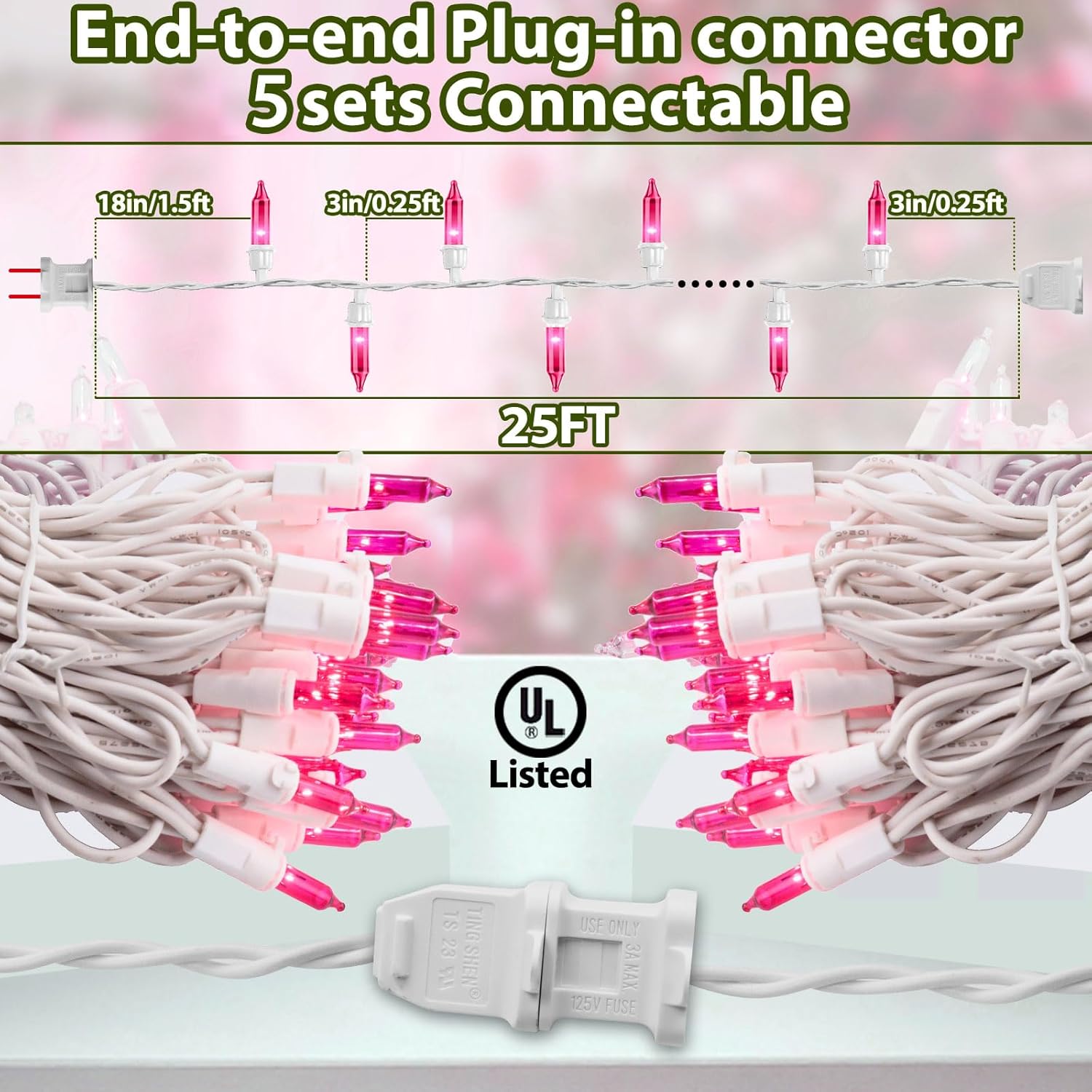 Pink Christmas Lights 25FT 100 Incandescent Bulbs, Pink Mini Lights with White Wire for Valentine's Day, Wedding, Garland, Thanksgiving, Party, Home, Indoor & Outdoor Festival Xmas Decoration