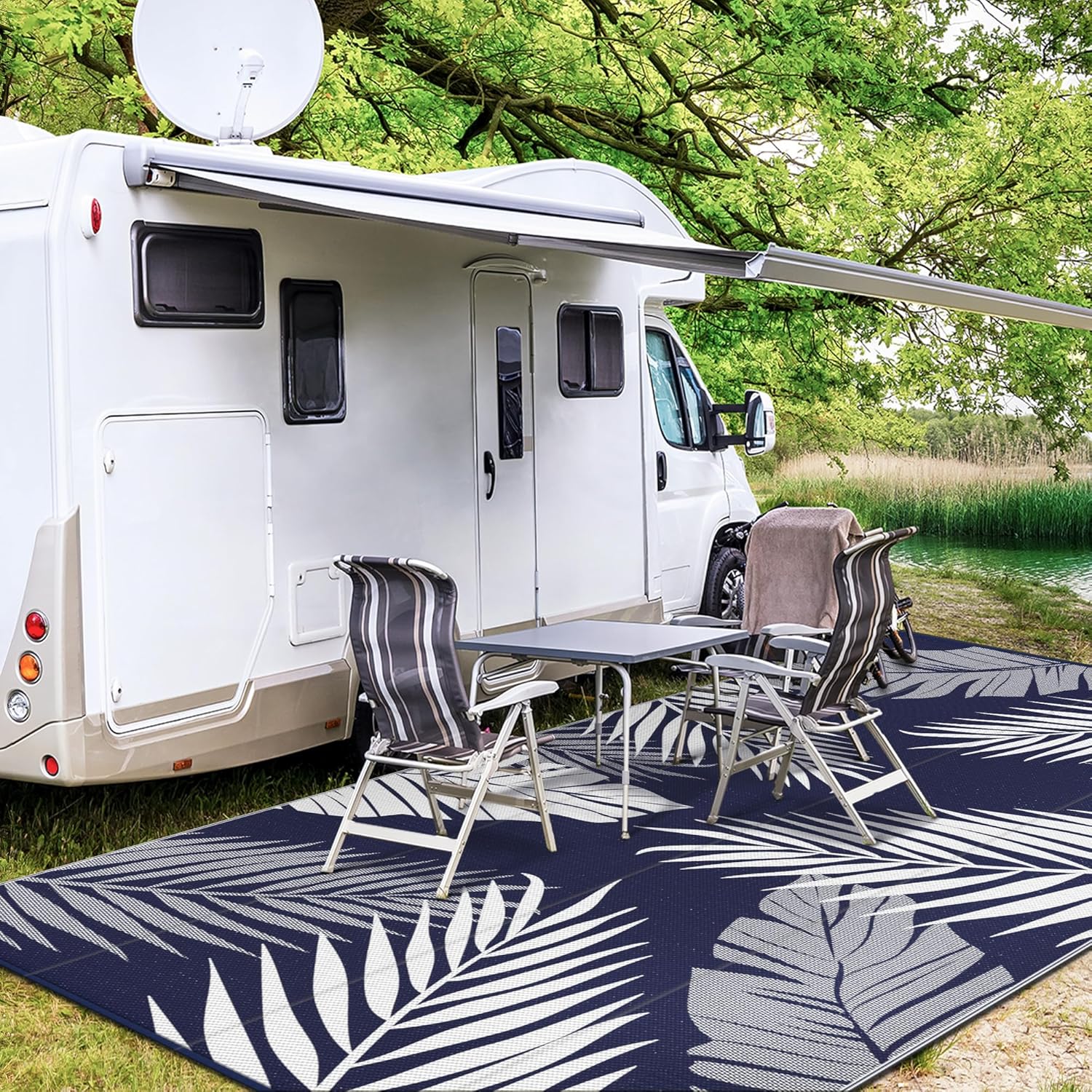 • Perfect Choice For RV Camping: Woven from lightweight plastic straws, these RV outdoor rugs fold compactly to fit in the included carry bag. This portable waterproof outdoor rug is easy to carry, with 4 corner loops and stakes to secure it. Using this camper rug reduces travel fatigue and adds plenty of space for fun — also a stylish touch for fall decor when setting up your campsite