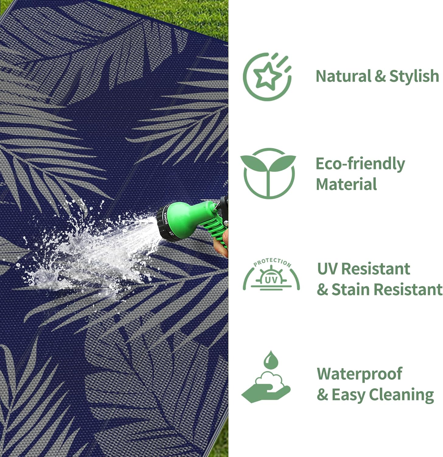 • Waterproof & Easy To Clean: Our indoor and outdoor rugs are waterproof, stain resistant, non-slip, easy to clean and well-breathable. As an outdoor patio rug or picnic mat, you don't have to worry about drink spills, food stains, sand or dirt, just rinse with water or wipe with a damp cloth. Plus, the breathable material allows it to air dry in minutes. You can enjoy your exclusive leisure time with your family or friends outdoors or indoors without any worries