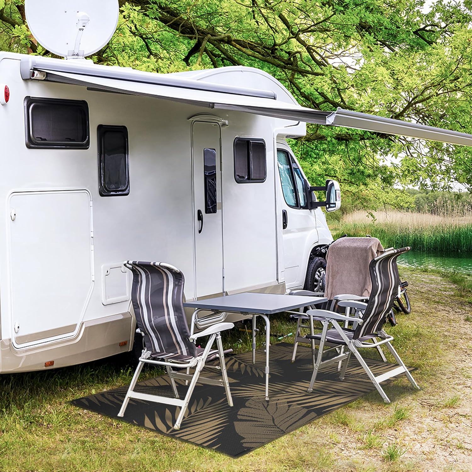 • Perfect Choice For RV Camping: Woven from lightweight plastic straws, these RV outdoor rugs fold compactly to fit in the included carry bag. This portable waterproof outdoor rug is easy to carry, with 4 corner loops and stakes to secure it. Using this camper rug reduces travel fatigue and adds plenty of space for fun — also a stylish touch for fall decor when setting up your campsite