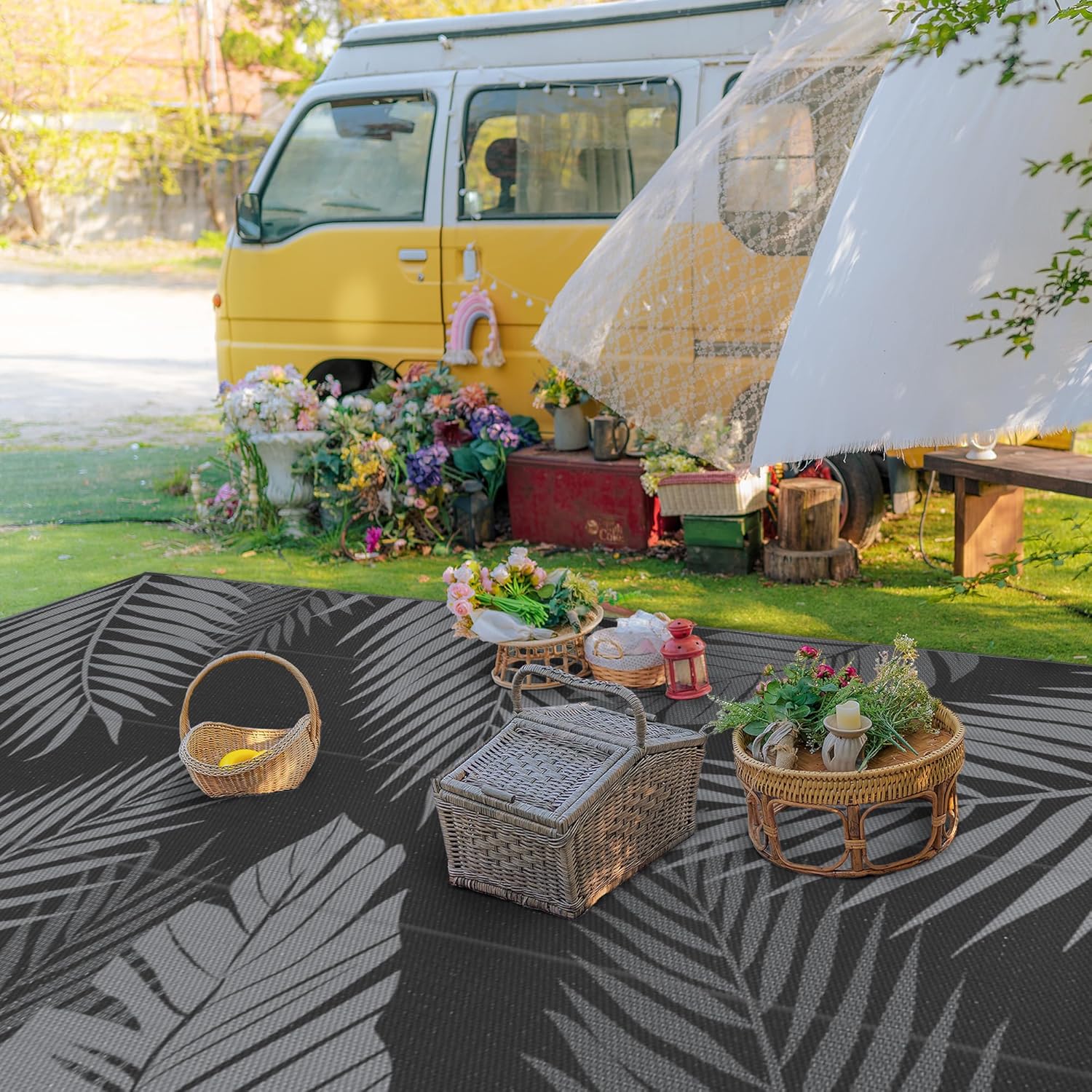• Perfect Choice For RV Camping: Woven from lightweight plastic straws, these RV outdoor rugs fold compactly to fit in the included carry bag. This portable waterproof outdoor rug is easy to carry, with 4 corner loops and stakes to secure it. Using this camper rug reduces travel fatigue and adds plenty of space for fun — also a stylish touch for fall decor when setting up your campsite