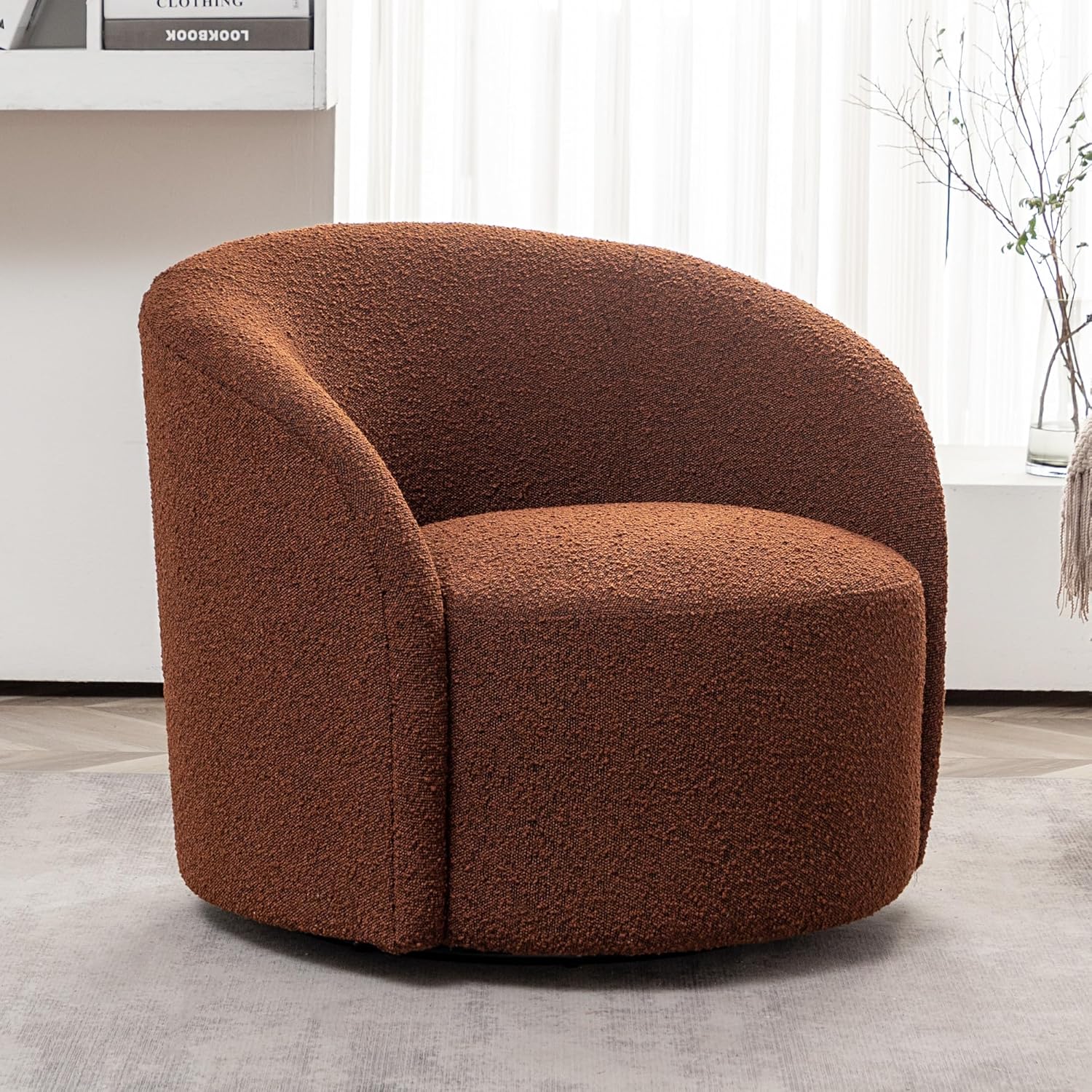 • BOUCLE UPHOLSTERY – This large Mid-Century Modern Swivel Barrel Chair is crafted with luxurious, popular boucle upholstery, providing a cozy, soft seating experience that instantly elevates your relaxation and comfort. Especially on cold days or when you are alone, bringing you the warmth of spring.