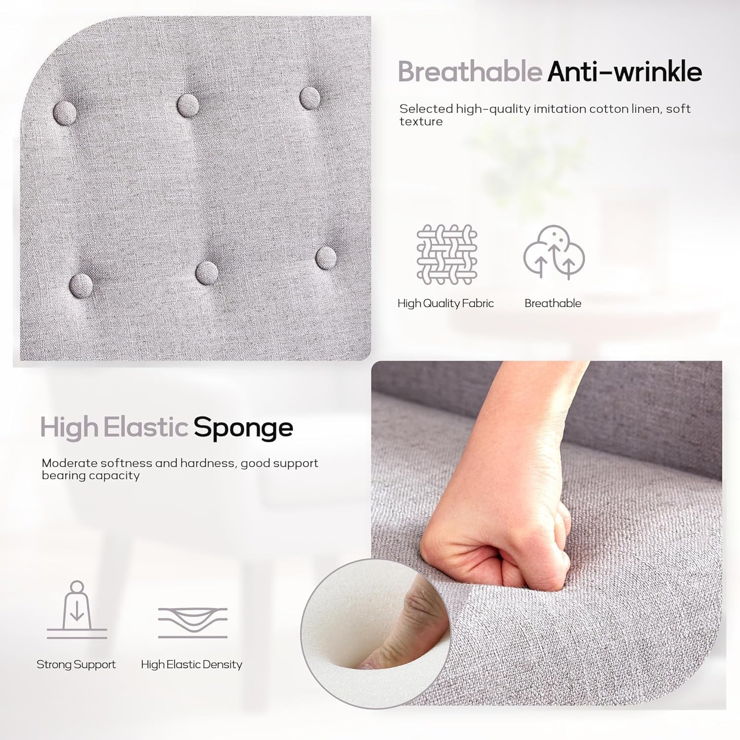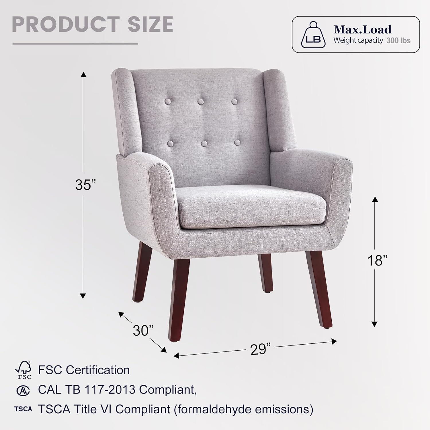 • Modern Style Design: The living room chair is designed with a simple and classic appearance to match any interior decoration style of your home. The tufted buttons of the living room chair back cushion are natural and the fabric is soft to the touch. Also available in six colors, adding a classic flair to your room is the versatile decorative chair you use