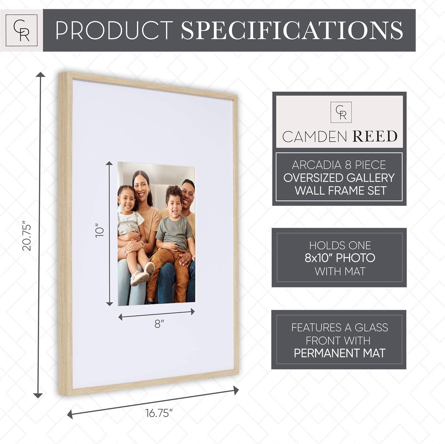 Camden Reed Arcadia 8 Piece Oversized Gallery Wall Frame, 16x20 and 16x16 Inch Matted Frames for Featuring 8x10 and 5x7 Inch Photographs or Art Prints, Natural Finish