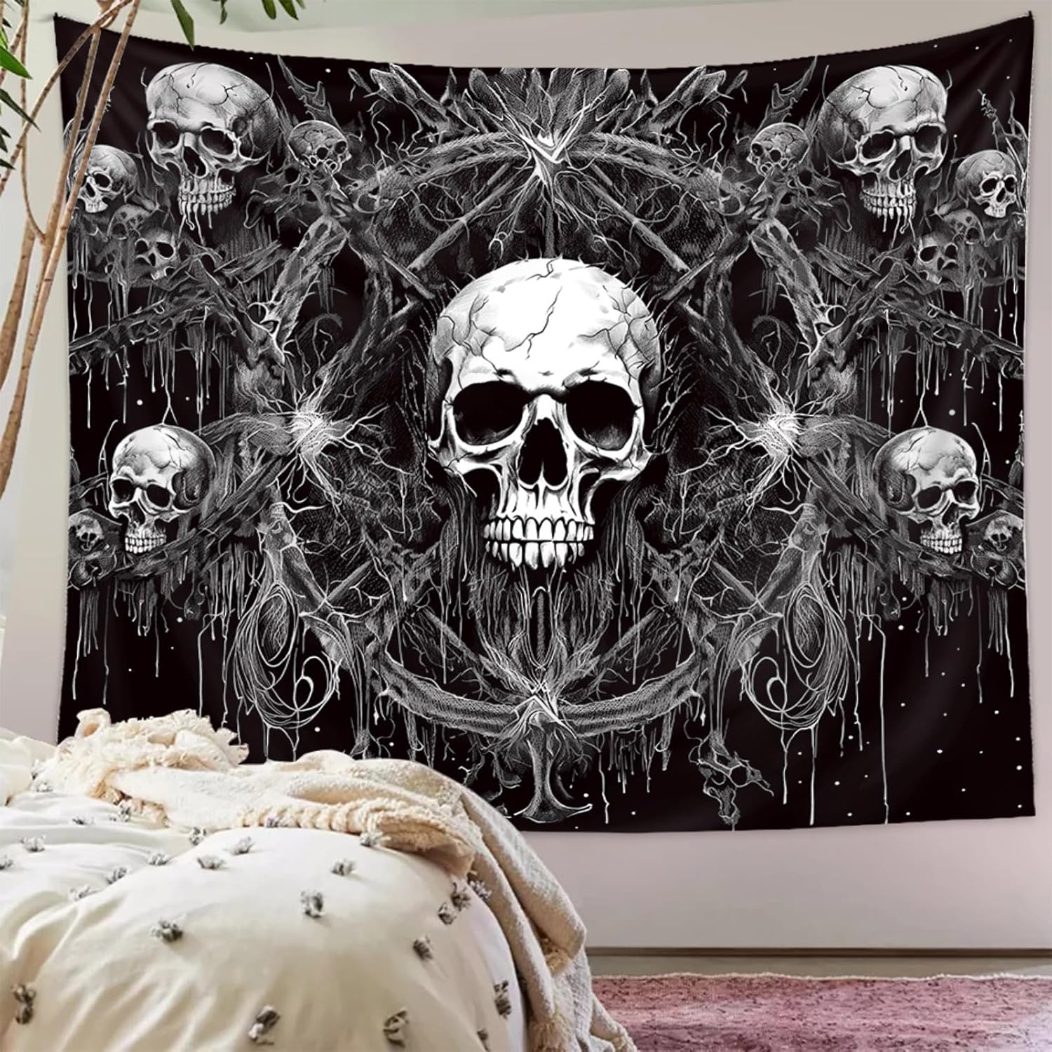 • High-Quality Material: Made from 100% polyester, this skull tapestry is durable, wrinkle-resistant, and easy to clean, ensuring that it will last for years to come.