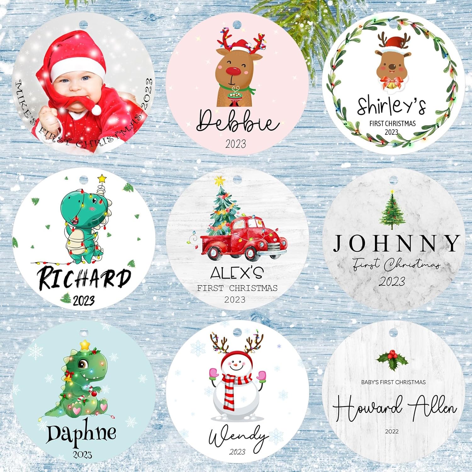 • 🎅🎅FREE CUSTOMIZATION:Customize personalized Christmas ornaments 2025 for your baby,express your best wishes to the your baby and celebrate the first joyful holidays together.Just clicking the "Customize Now" button,choose the personalized ornaments design,upload the picture and type the text,you will own a photo ornaments for Christmas tree