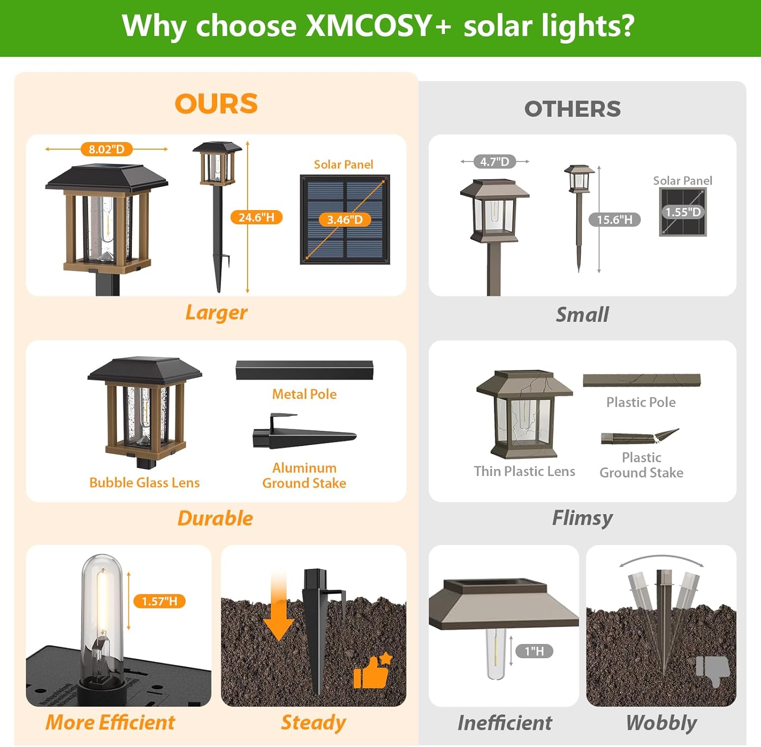 • ⚡Wireless Solar Landscape Lighting: No wiring needed! Simply stake these garden lights solar powered anywhere with sunlight exposure. Product size: 5.75"*5.75*"24.6" H (including ground insertion). Whether used in soft garden beds or along walkways, this stake provides reliable support while maintaining an elegant look.