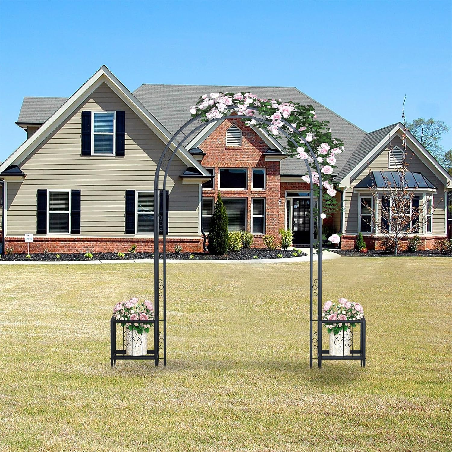 • 【Perfect for Outdoor Use】Our metal arch is mainly designed as an eye-catching decoration on garden, yard, patio or park. You can place it in front of your doorway or the pavement, making a perfect entry out of it. Or you can use it as a decorative backdrop for your wedding to bring you wonderful memories.Arch size: 80" wide x 88.6" high.