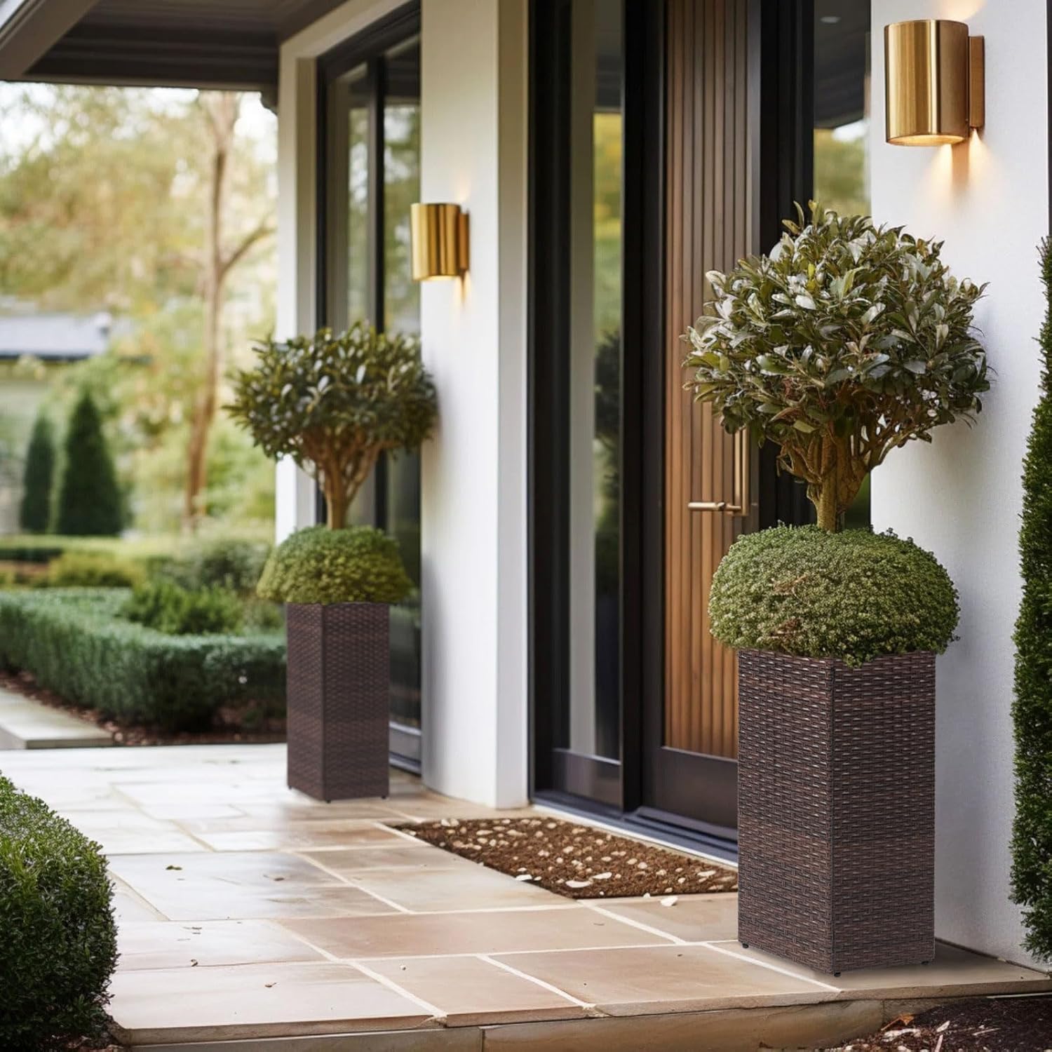 • Durable Planter: The tall square planter is constructed of high-quality metal with all the handwoven charm of PE rattan, making it light-weight yet sturdy and durable. It is rust- and weather-resistant, so you can keep it out in your yard.