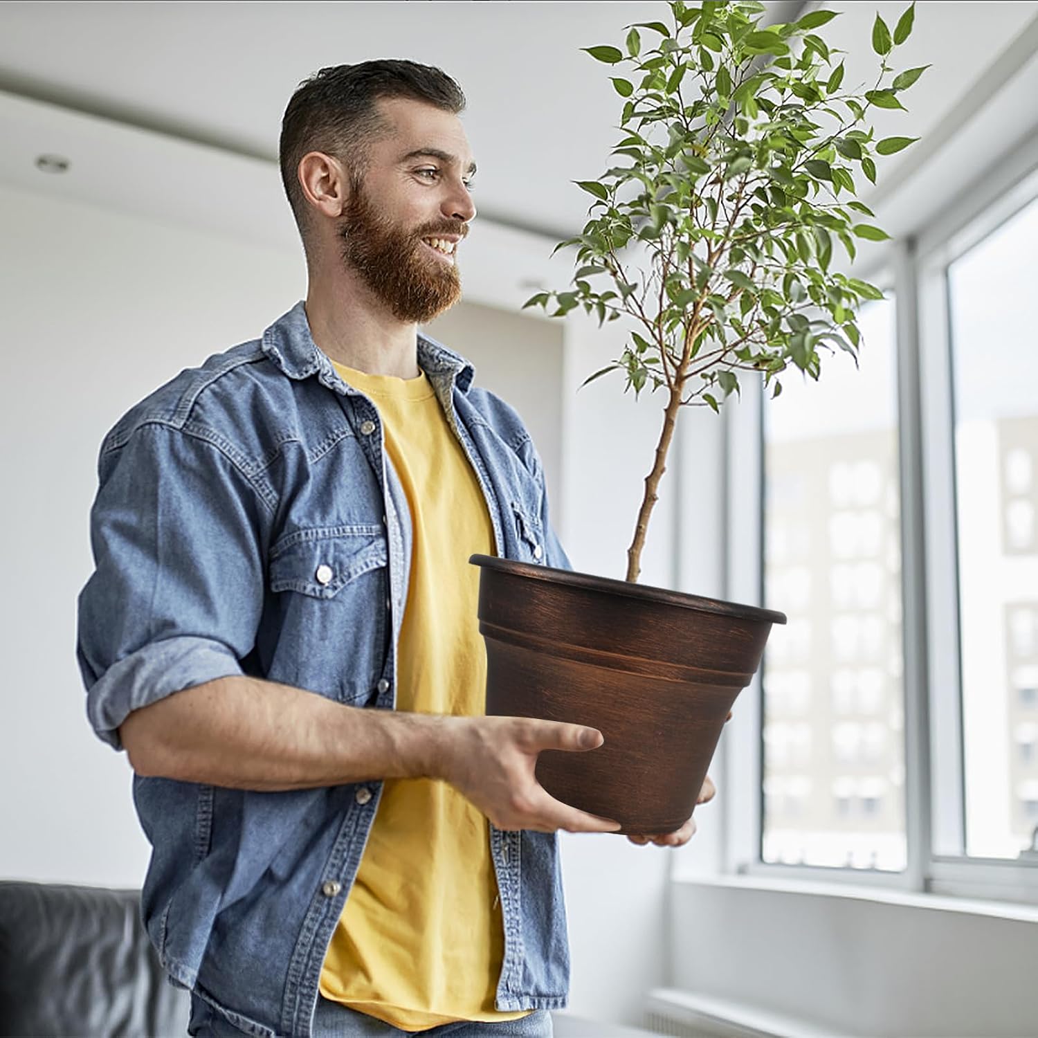 • 【TRADITIONAL DESIGN】Plastic planters for indoor plants with trays are designed in in dark gold colors & a classic look, which allow this pot to fit into any indoor & outdoor setting. With these golded flower pots, it could adds fresh, decorative flair to your home. Decorate your windowsill, desktop, shelf, bedroom, living room, kitchen, garden, office with our 13 inch large plastic plant pot.