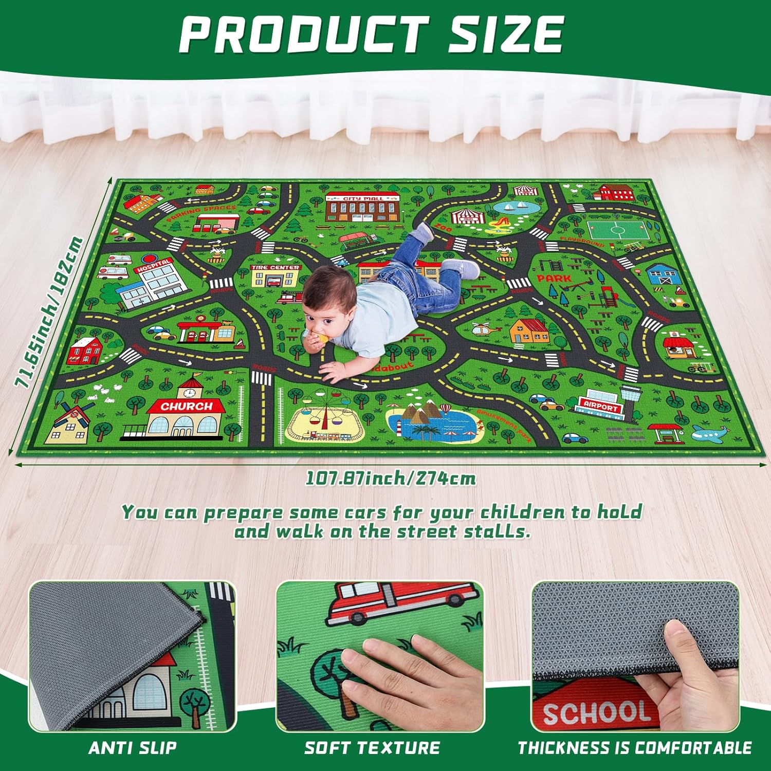 • Non Slip Kids Playroom Rug: this road traffic playrug featured with non slip and soft texture, provides a cushiony playfield that ensures safety during vigorous play; With a reliable non slip bottom, there's no risk of slipping or sliding; This kid baby and toddler friendly playrug ensure soft play times