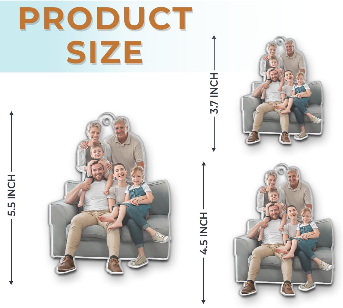 • 🎄 Custom Ornaments With Pictures: Crafted with high-quality acrylic, this ornament features a height of 3.7 inches (~9.5 cm) and a slim 0.12" thickness, ensuring its durability and lightweight design. The ornament can be customized with your photo, which makes it a truly personal and cherished gift. We include a hanging gold cord loop to easily hang on your Christmas tree or an ornament stand.