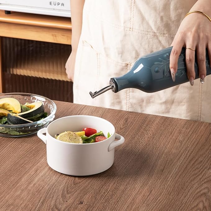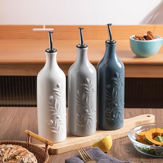 • Durable and Precise Pouring Control - The olive oil bottle fired at high temperatures, to form a smooth glazed surface, strength and durability. The carefully designed spout that allows for easy pouring without any messy drips or spills.