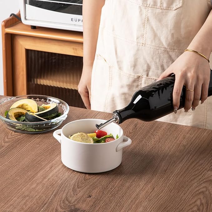 • Durable and Precise Pouring Control - The olive oil bottle fired at high temperatures, to form a smooth glazed surface, strength and durability. The carefully designed spout that allows for easy pouring without any messy drips or spills.