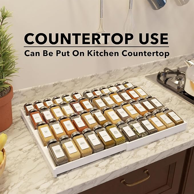 • 4-TIER LARGE CAPACITY - This spice rack organizer for drawer is designed with 4 layer to hold up to 48 spice jars; You can identify your spices instantly with this insert holder