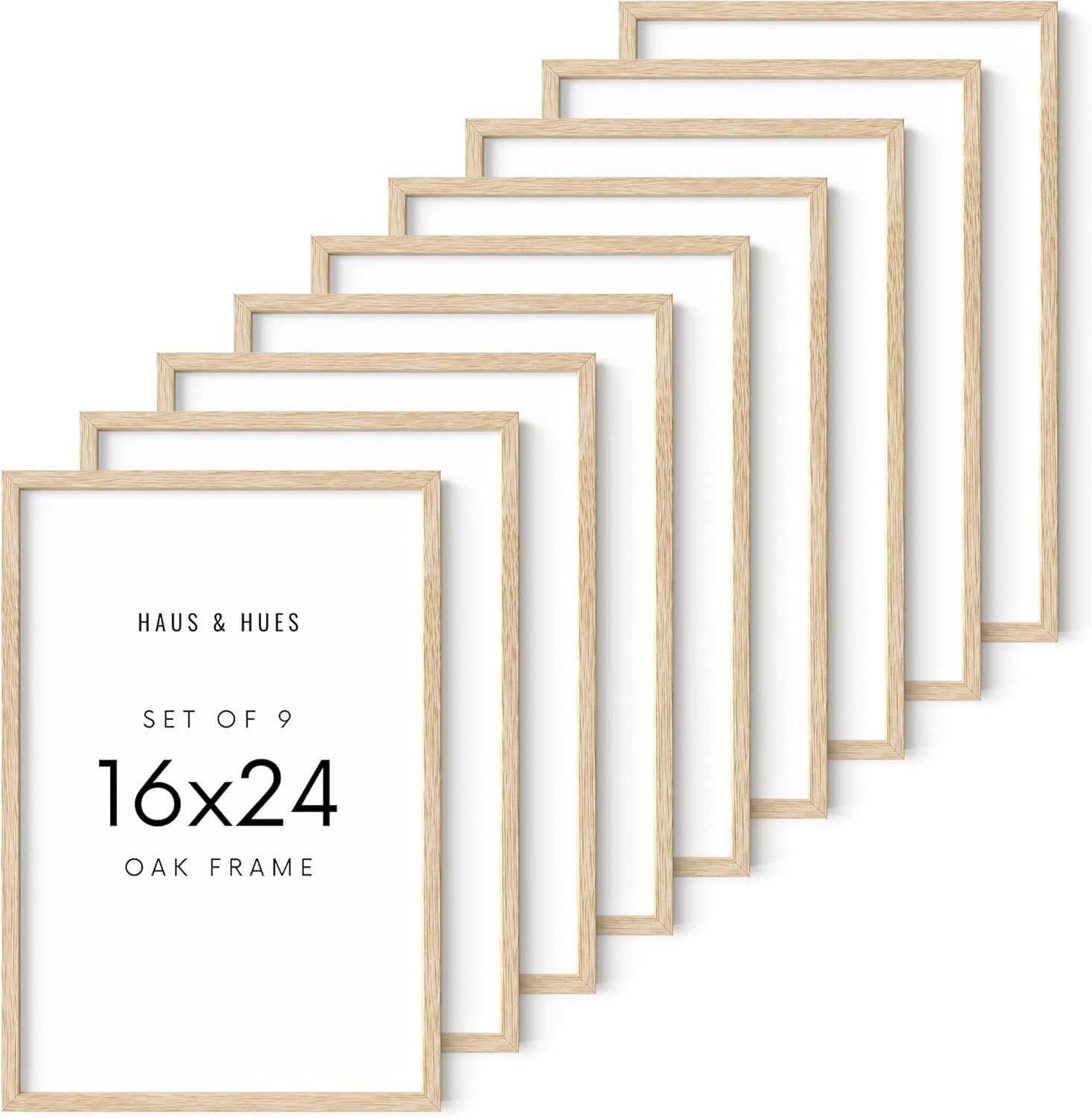 HAUS AND HUES Square Picture Frames 16 x 24 Set of 9 - Photo Gallery Wall Frame Set, Wood 16x24 Frames, 16 x 24 Frames Gallery Wall Set, 16x24 Frame with Mat, Square Frames 16x24 (Beige Oak Frames)