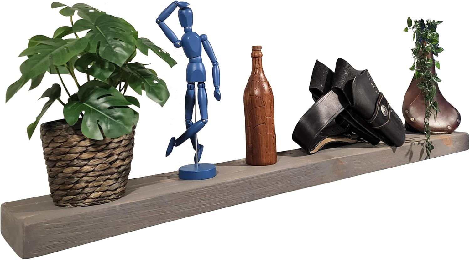 • Elevate Your Space with Rustic Charm: Transform your living room or any space with our large floating shelves for wall. These 60 inch floating shelf beauties, crafted from natural wood, add a touch of rustic warmth and provide ample display space for your cherished items.