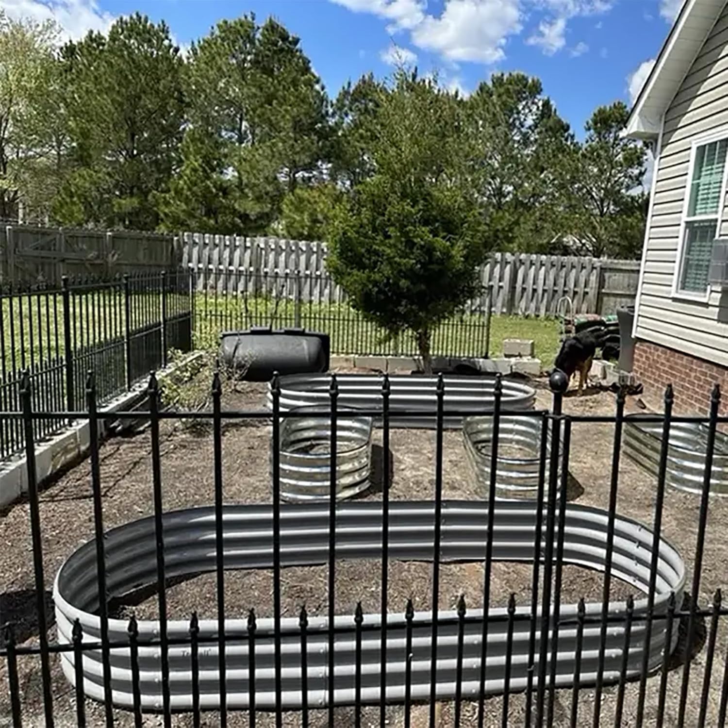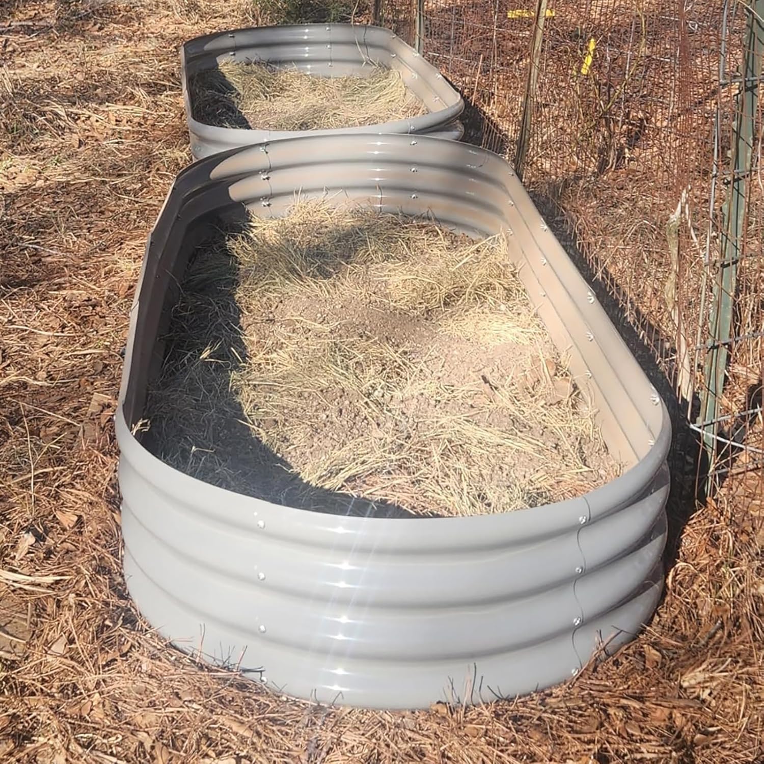 • 【Safety Features】①Anti-rust Coating, do not contaminate soil, safe for plants and humans; ②Oval shape, the raised planter box has rounded corner; ③Thickened crimped edge design, no sharp edges, smooth to the touch; ④ Gloves included; will not hurt your hand when installing or planting