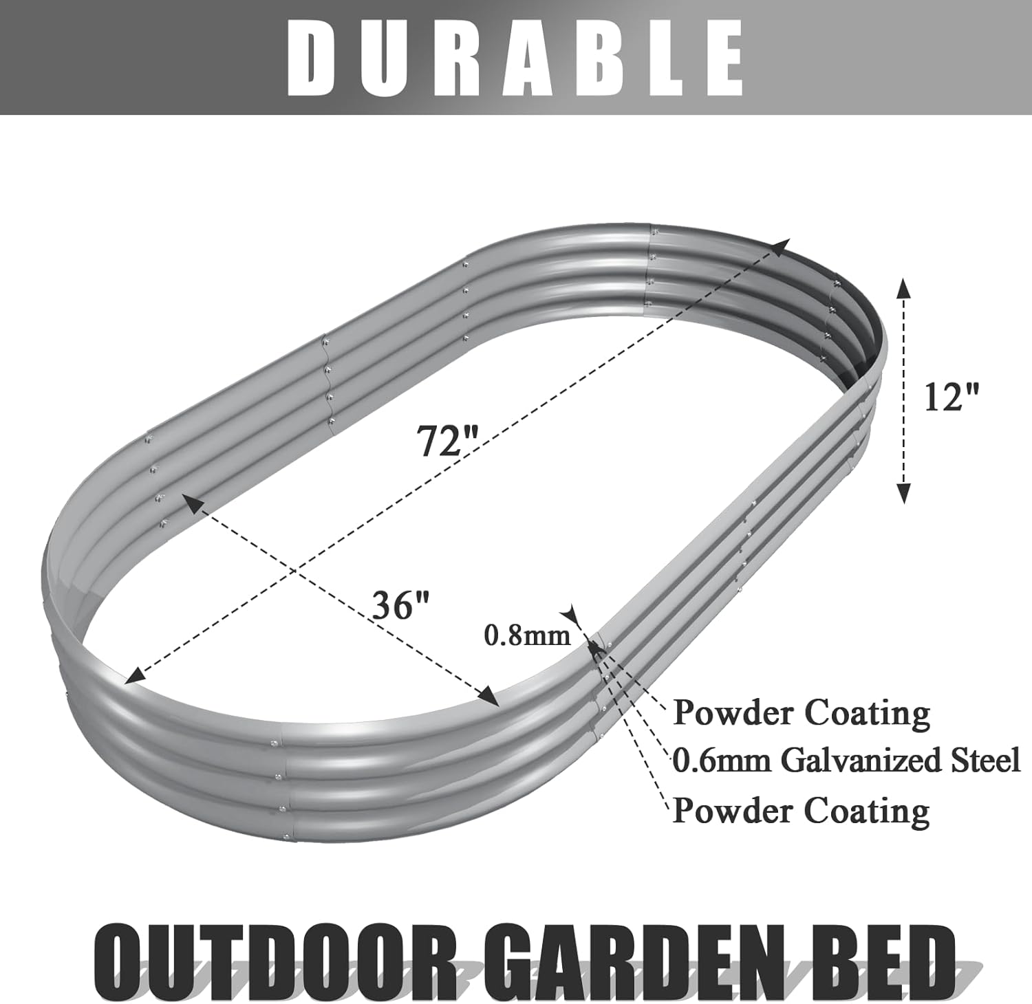 • 【Outdoor Garden Bed Size】72''(L) x 36''(W) x 12''(H), provide extra large growing space to meets your planting needs and the oval shape makes the garden more tidy