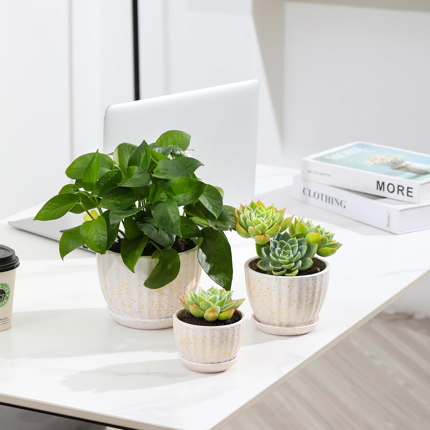 Ceramic Plant Pots with Drainage Holes and Saucers, Round Flower Pots for Indoor Plant, Diameter 3.3/4.3/5.5 Inches Small Flower Planters Set of 3
