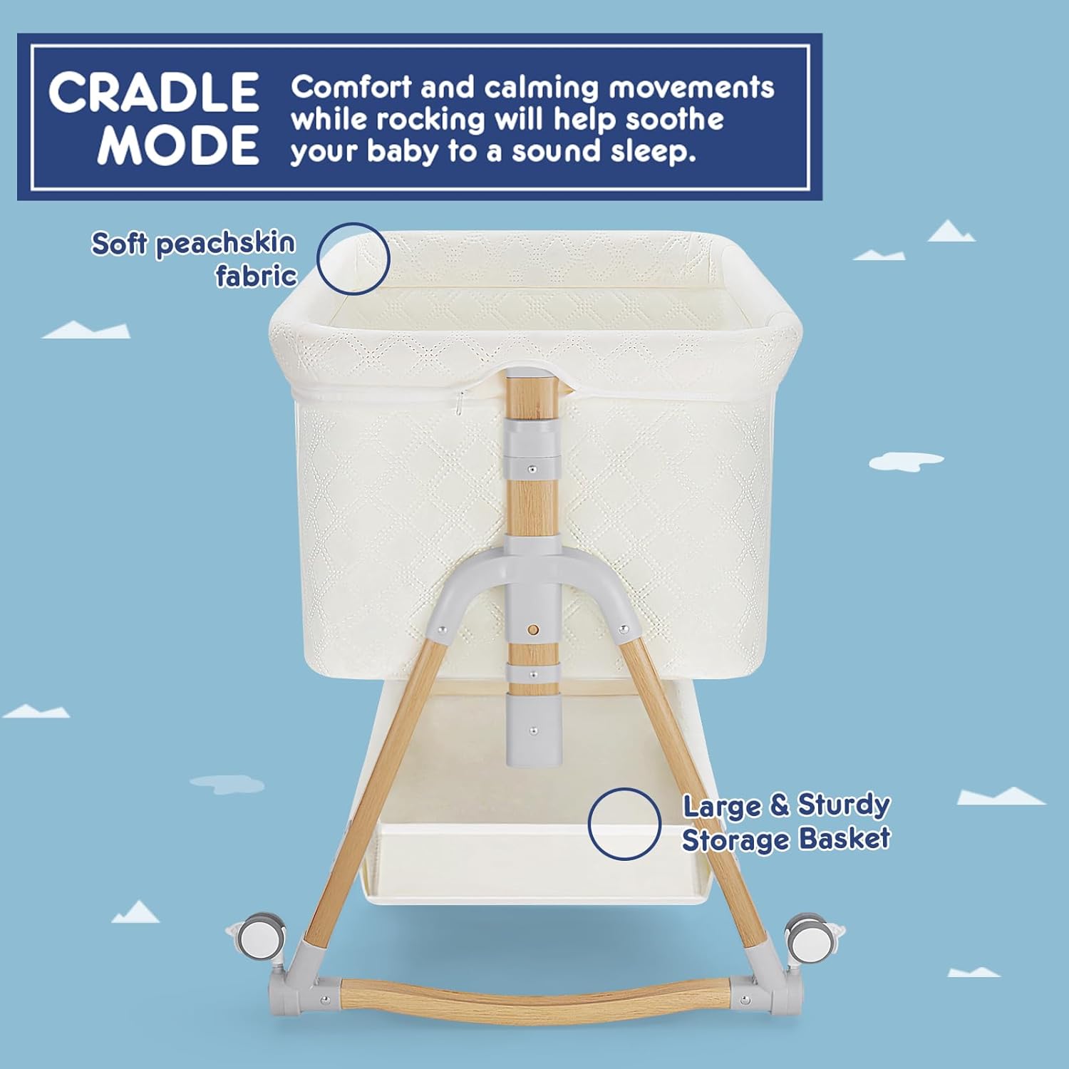 • 3 in 1 Convertible Bassinet: HARPPA bassinet can be used as a bedside bassinet、rocking bassinet or standalone baby bassinet. Mimicking gentle parental rocking to create a tranquil sleeping environment for the baby
