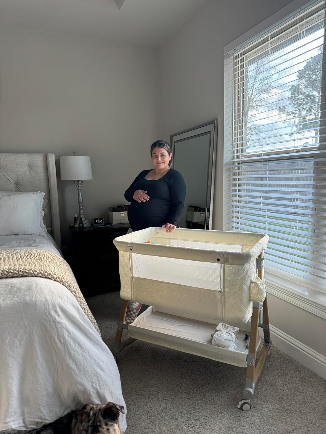 • 5 Height Adjustable: Baby bassinet bedside sleeper offers 5 adjustable heights, suitable for accommodating various bed. Additionally, the crib features an anti-spit-up function with a 3-8° incline range