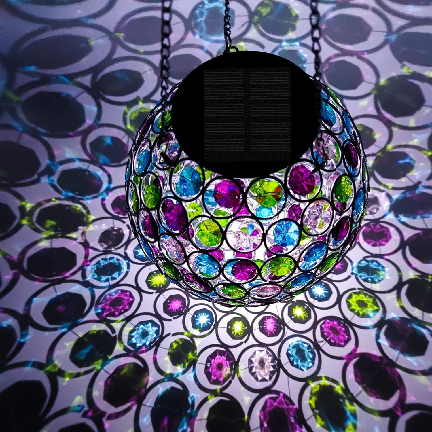 • 【Hand-made Lantern】Dia 7.5 inch solar lantern is designed with hollowed-out pattern, it beams attractive and beautiful light throughout the orb in the night. During the day, the solar lantern sparkles in the sunlight by these polygonal acrylic pieces. Metal frame makes this decorative lantern more sturdy.
