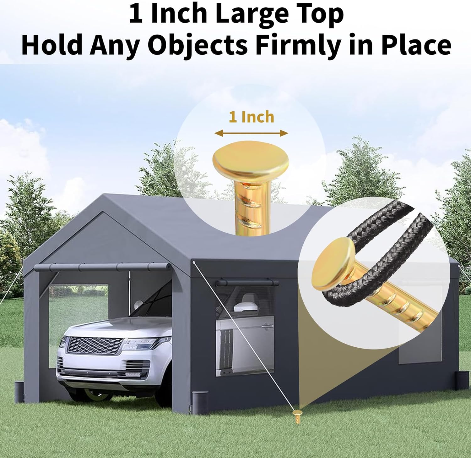 • 【RIBBED & YELLOW GALVANIZED】These rebar stakes are made of malleable steel material. Yellow galvanized to help avoid rust. Ribbed ground anchors are solid, secure firmly and no bend.
