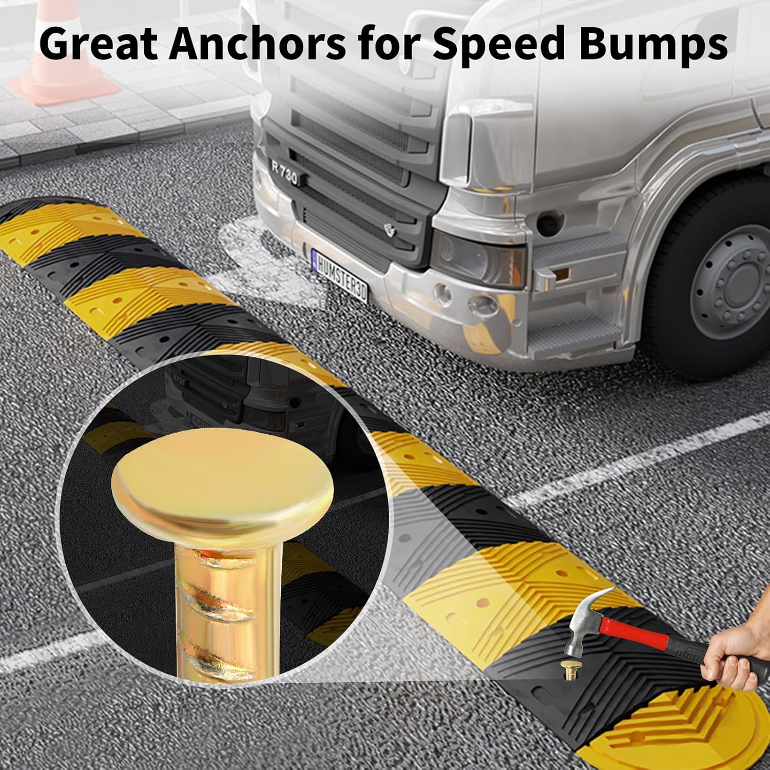 • 【16 INCHES REBAR SPIKES】Sold in bundles of 10 Pcs 1/2" (12mm) diameter and 16" long rebar spike, 1" diameter flat top, suitable mounting hardware for permanent installation in asphalt. Such as anchor speed bumps, parking curbs, wheel stops, cord covers, handicap threshold ramps etc.