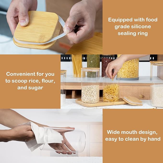 • [Multi-functional glass storage container]- This D2scrma airtight glass canisters with a natural bamboo lid and a good silicone seal ensures an airtight storage environment that keeps items fresh and extends their shelf life. Not only for kitchen storage, but even for pet food or other household items such as laundry beads, bathroom cotton balls, etc.