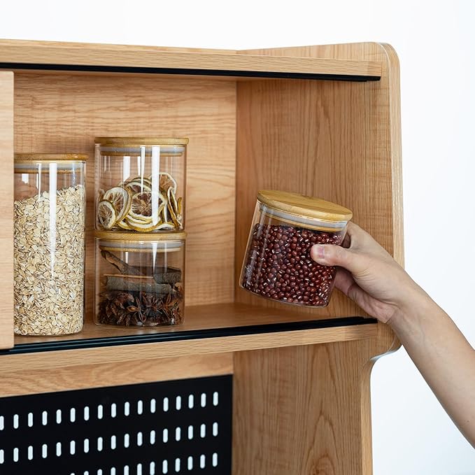 • [Thickened Glass jars] - Our glass storage jars are made of food grade borosilicate glass, BPA-free, hard and safe. Note: Our glass jars can be washed in the dishwasher or put in the refrigerator. We recommend removing the wooden lid before using it in the dishwasher and washing it by hand.