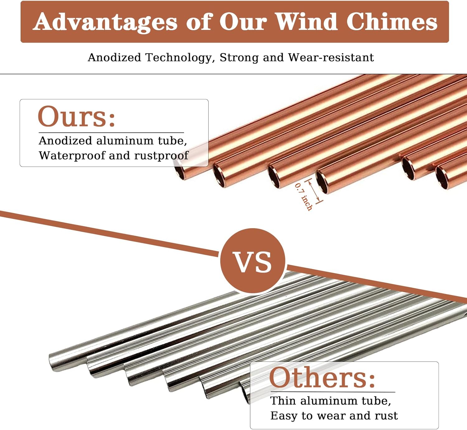 • Professional Tuning for Better Melodies: Each remembrance wind chime tube is manually tuned by our professional tuning experts for great sound. At the same time, an adjustable button is designed in the middle of each wind chime, and different sounds can be produced by adjusting the striker, or even a mute mode when you need. It can make a beautiful voice without a strong wind.