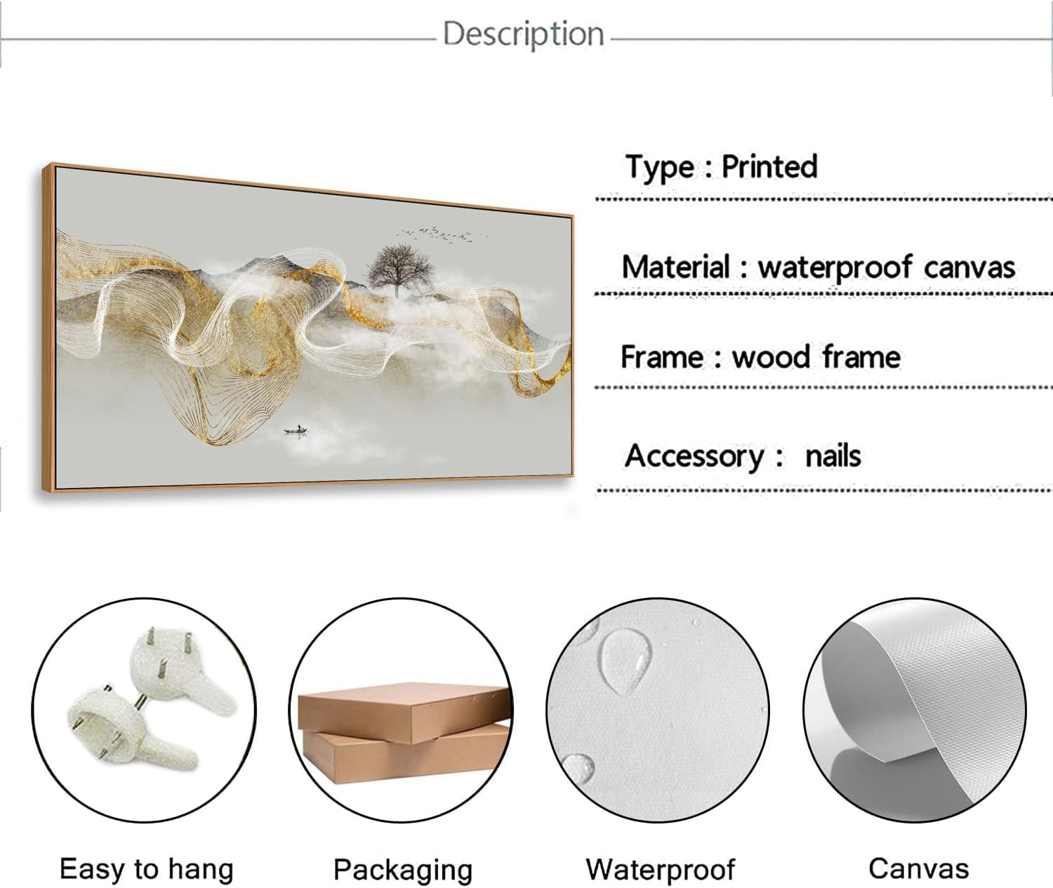 HUADAOART Wall Art Modern Zen Light Luxury Natural Landscape with Golden and White lines Background Wall Decor Canvas Prints for Living Room Bedroom 20x40 Inches (Framed)