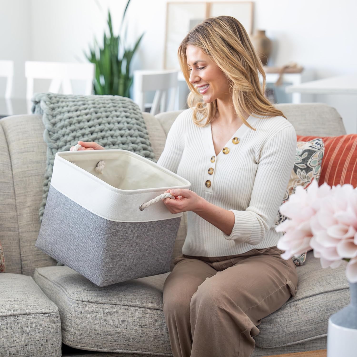 • Decorative Fabric and Rope Handle - These versatile storage baskets for organizing your everyday life are made with a thick, high-quality fabric and fitted with rope handles to add a stylish touch to a living room, bedroom, office, or personal space.
