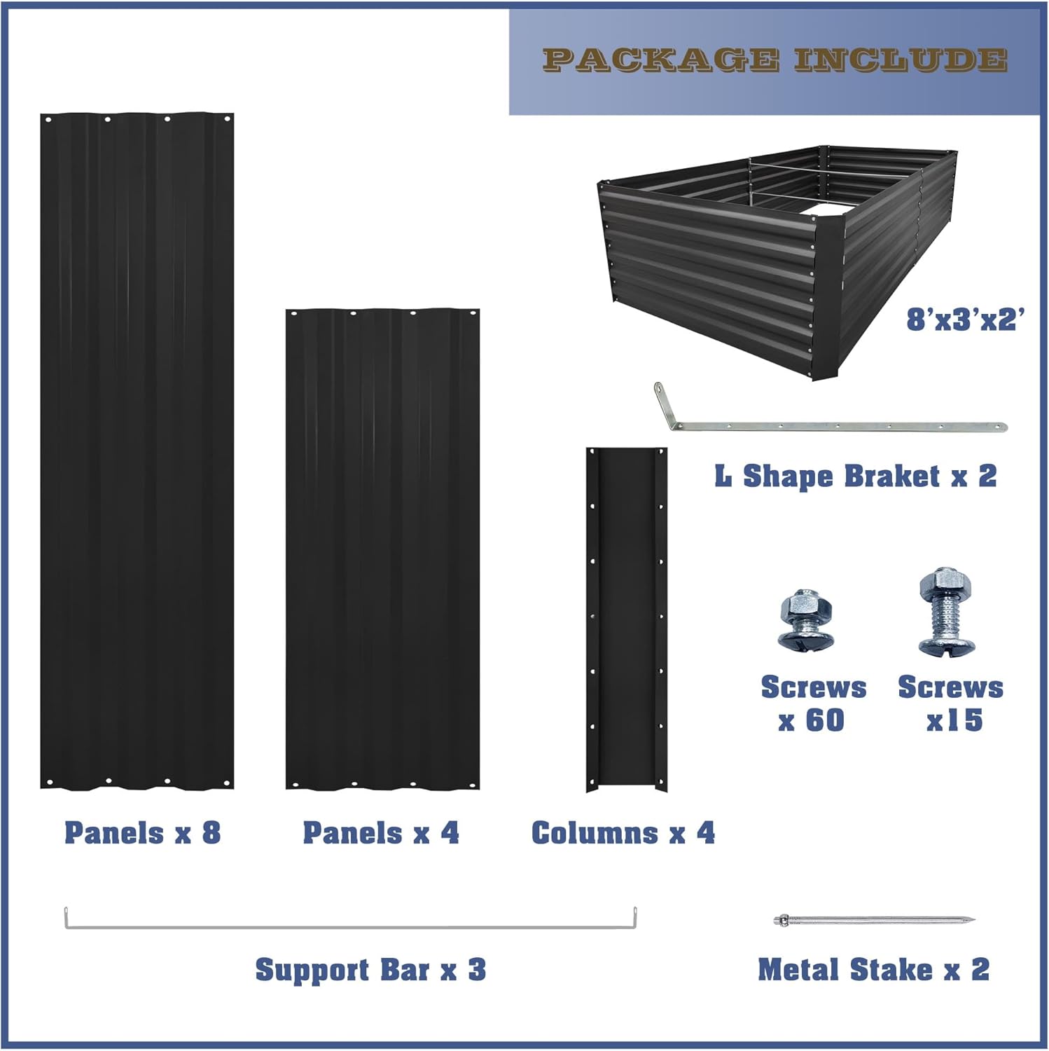 8x3x2FT Metal Raised Garden Bed Kit, Galvanized Outdoor Garden Bed Planter Box for Vegetables, Flowers, Herbs, Succulents and More, Black