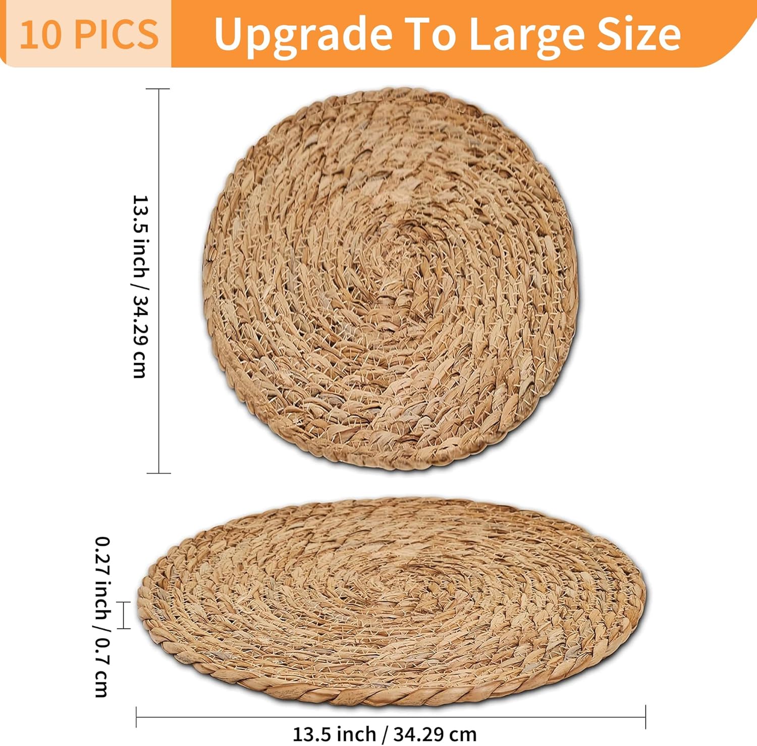 Defined Deco Woven Placemats Set of 10,13.5" Round Rattan Placemats,Farmhouse Weave Rustic Braided Wicker Table Mats for Dining Table Home Wedding
