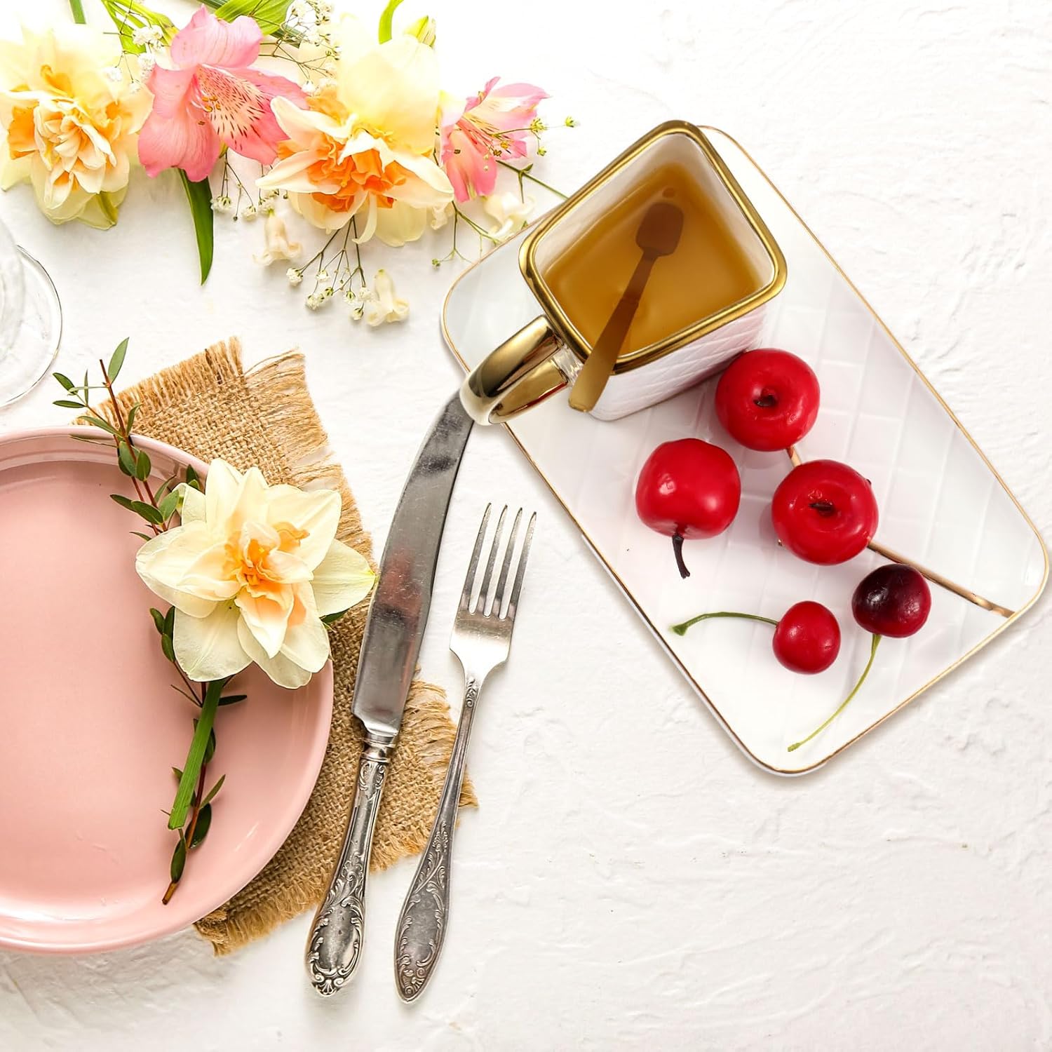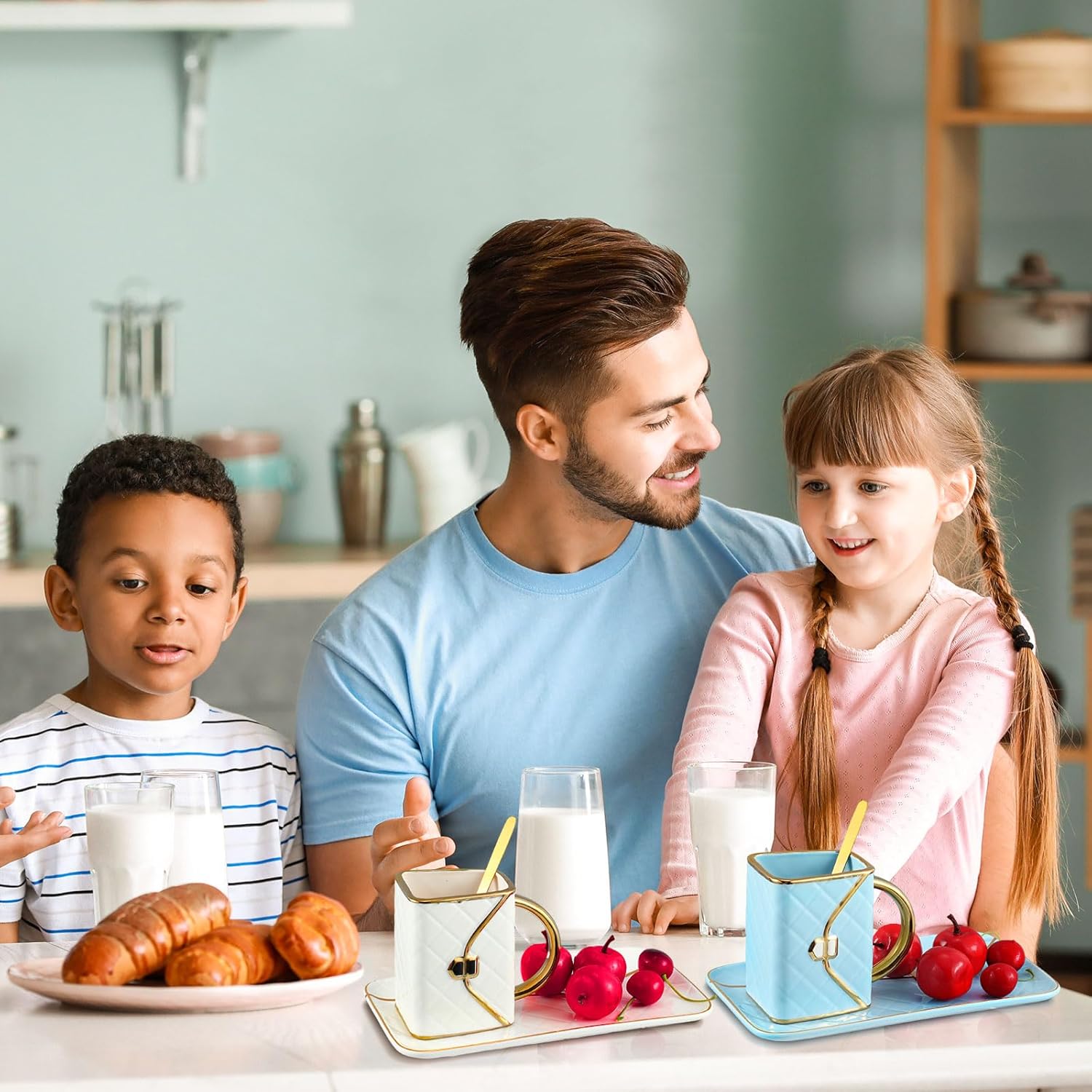 • Attractive and Elegant: the ceramic aesthetic coffee mug with saucer is characterized by handbag shapes and hand painted golden edges, and the color combination of white, blue and gold makes it more beautiful and graceful, which can bring both decorative and practical functions