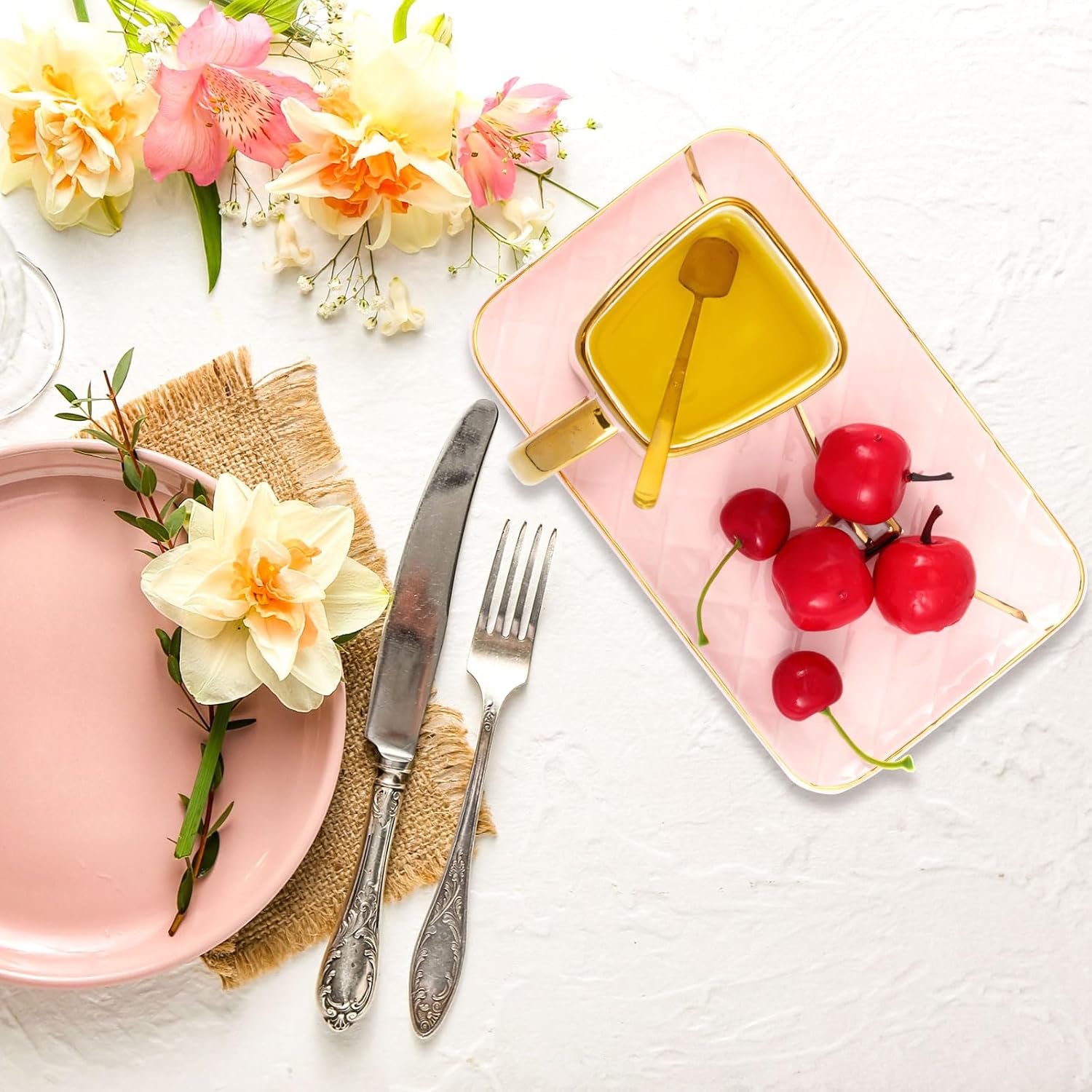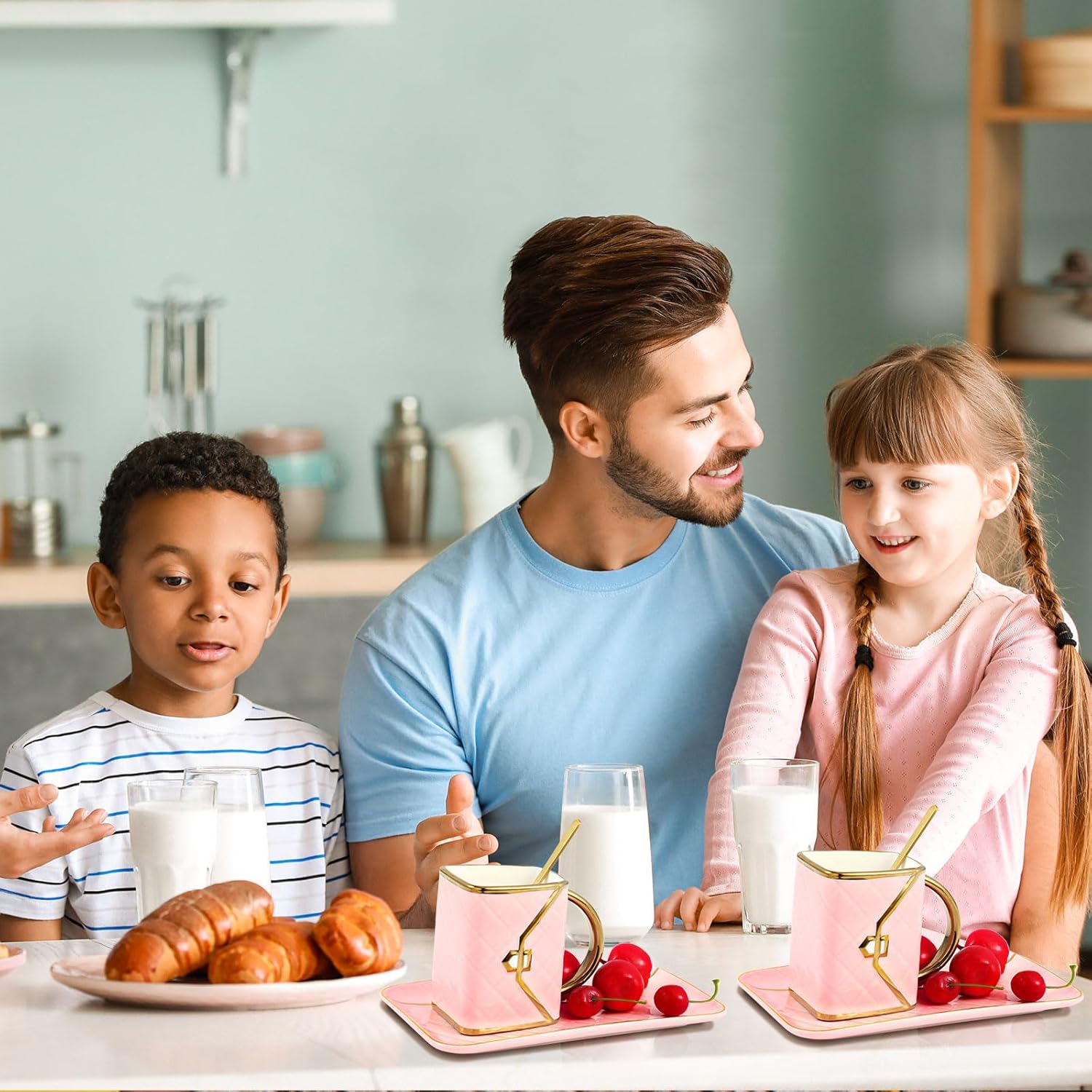 • Attractive and Elegant: the ceramic aesthetic coffee mug with saucer is characterized by handbag shapes and hand painted golden edges, and the color combination of pink and gold makes it more beautiful and graceful, which can bring both decorative and practical functions