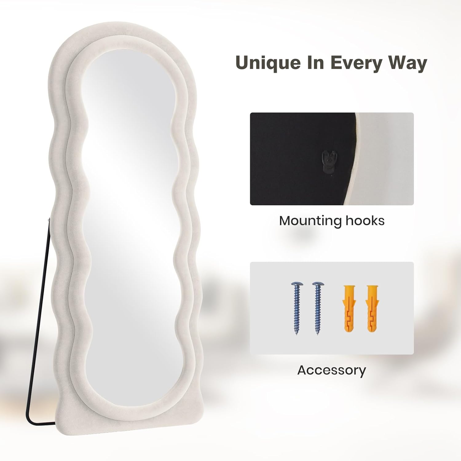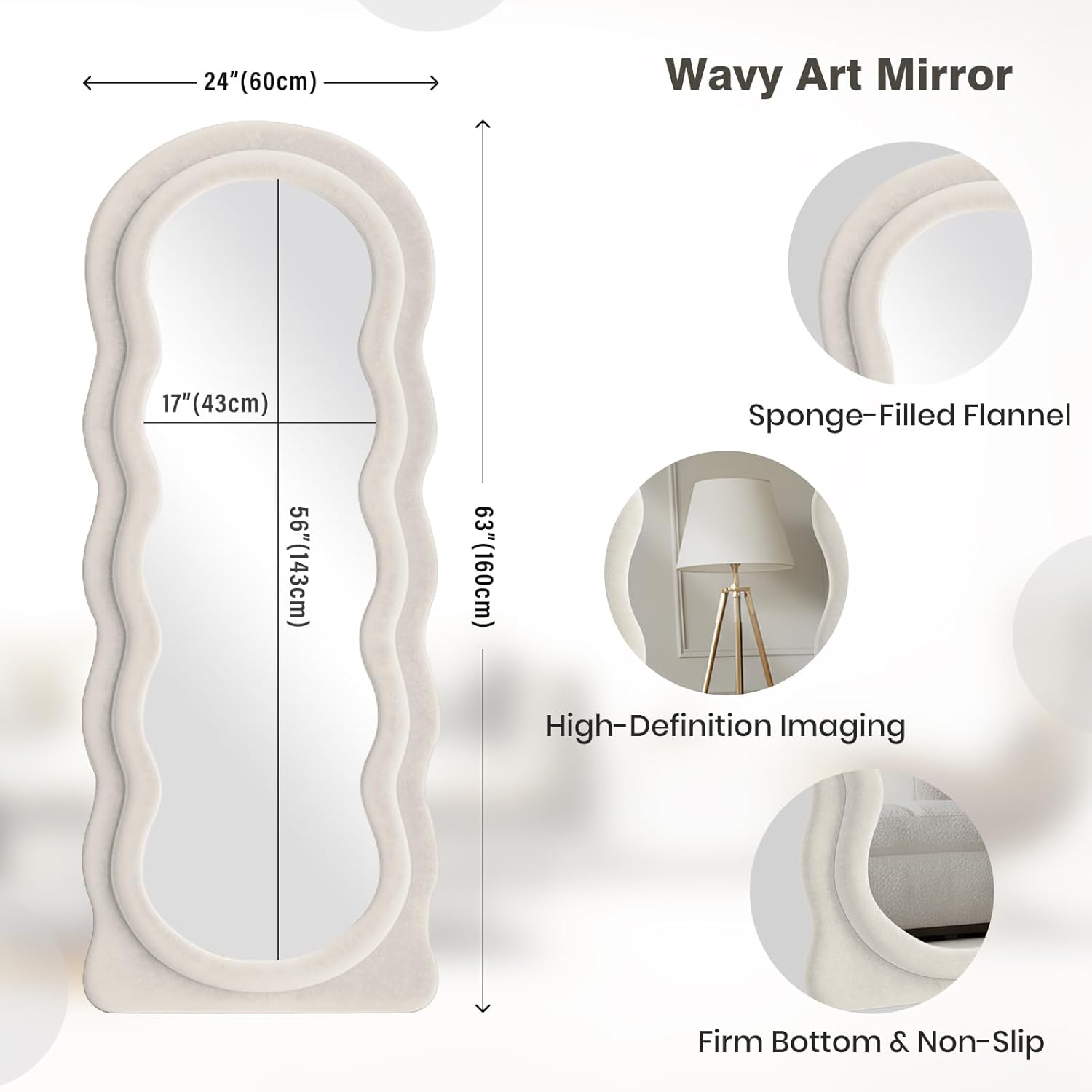 • White Flannel Irregular Wavy Frame Floor Mirror: The full length standing mirror features a modern style that can complement any type of room decor, adding a touch of elegance to your room. It will be a great wall decor art piece for your home. This full body mirror with sleek looking is also great for selfies or pictures in general