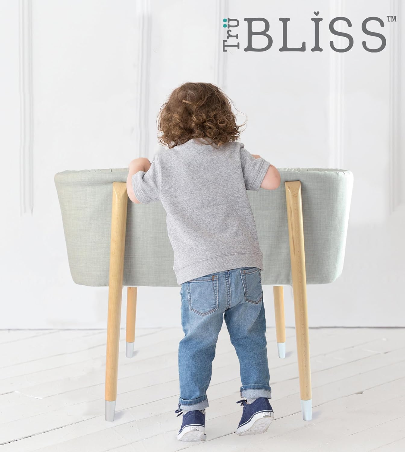 • SAFETY IN MIND - The TruBliss Sova Bassinet prioritizes your baby's safety with its extra deep breathable fabric walls, creating a secure and cozy environment for your newborn. This bassinet is not only functional but also stylish, featuring beautifully tapered solid Beech wooden legs with brushed brass tips. It comes with a padded, vinyl-covered foam mattress pad and two fitted sheets that are machine washable, making it suitable for even the messiest newborns.