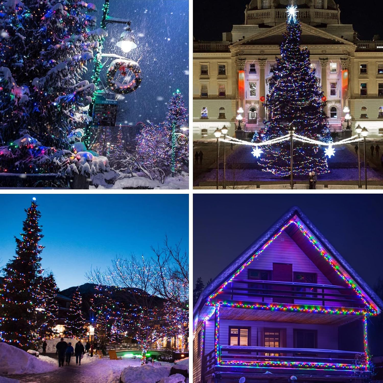 • [Solar Powered & Auto On/Off]: This string lights for outside is solar powered and waterproof, no electricity cost. Larger Christmas solar panel with quick charging technology, bring you higher solar energy conversion, it can work up to 10-12 hours after being fully charged (8 hours). Just place the battery panel in sunny area, it will automatically charge at daytime and light up at night.