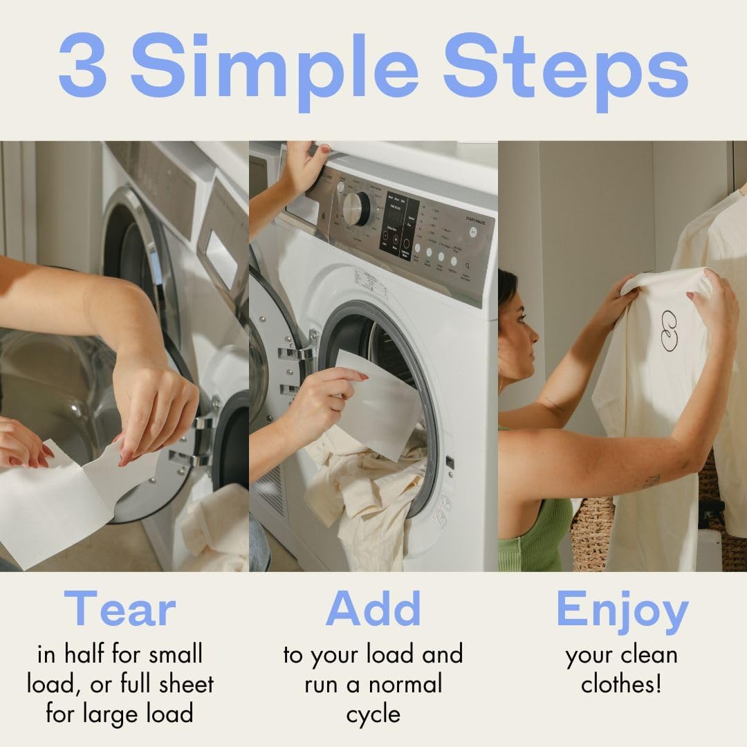 • ✅ HOW IT WORKS: Place a laundry sheet in the drum with your clothes, wash as normal. Use a full sheet for standard loads and a half sheet for smaller loads. Suitable for all machine types, water temperatures and cycles (including hand washing and delicates).
