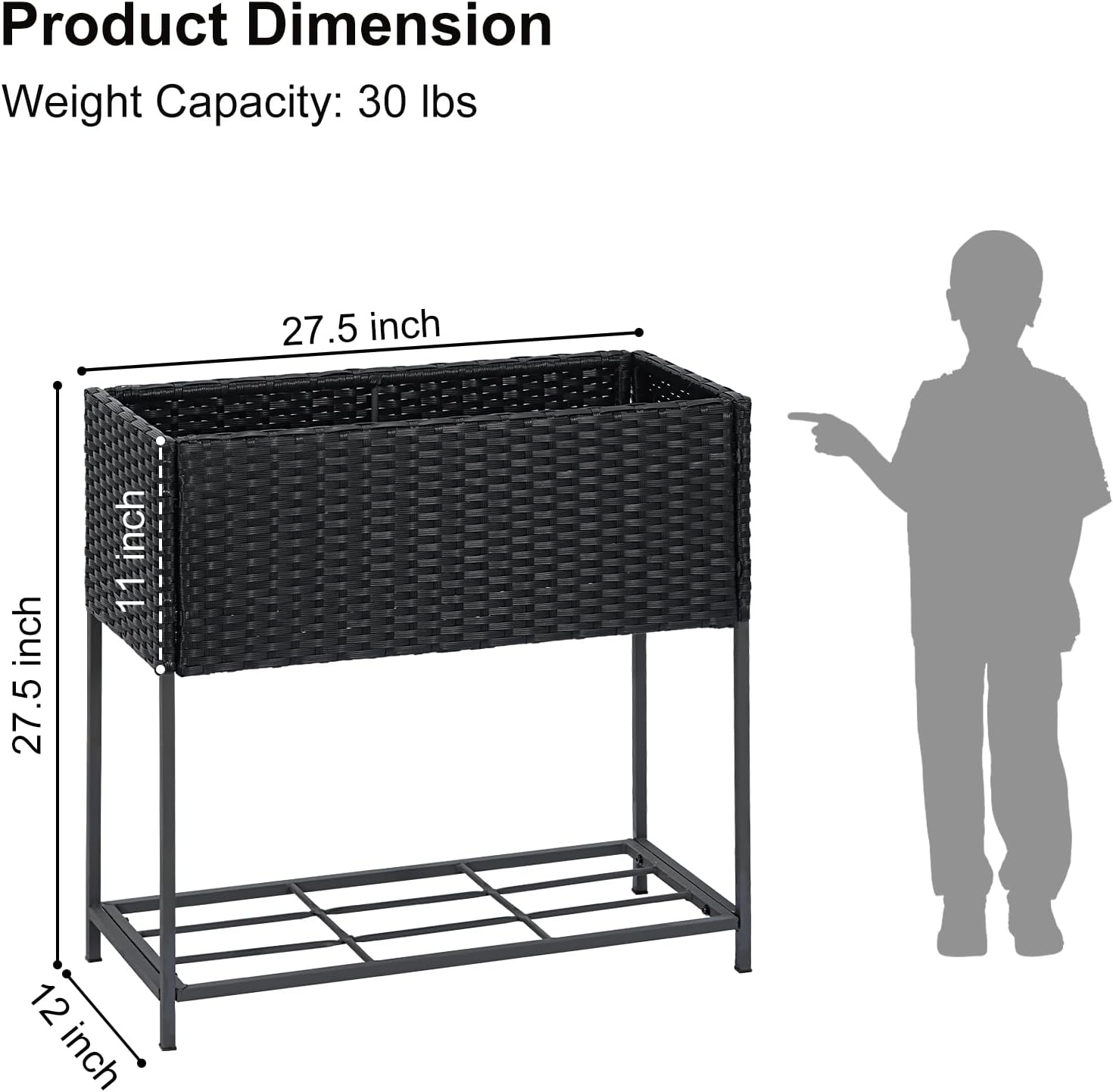 • Dimension: With a 27.5’’ L x 12’’ W x 27.5’’ H elevated planter that holds up to 2 cubic feet of soil, the planter box provides ample breathing and growing space for your vegetables and plants. Available in flat packaging, easy to assemble and with detailed instructions.