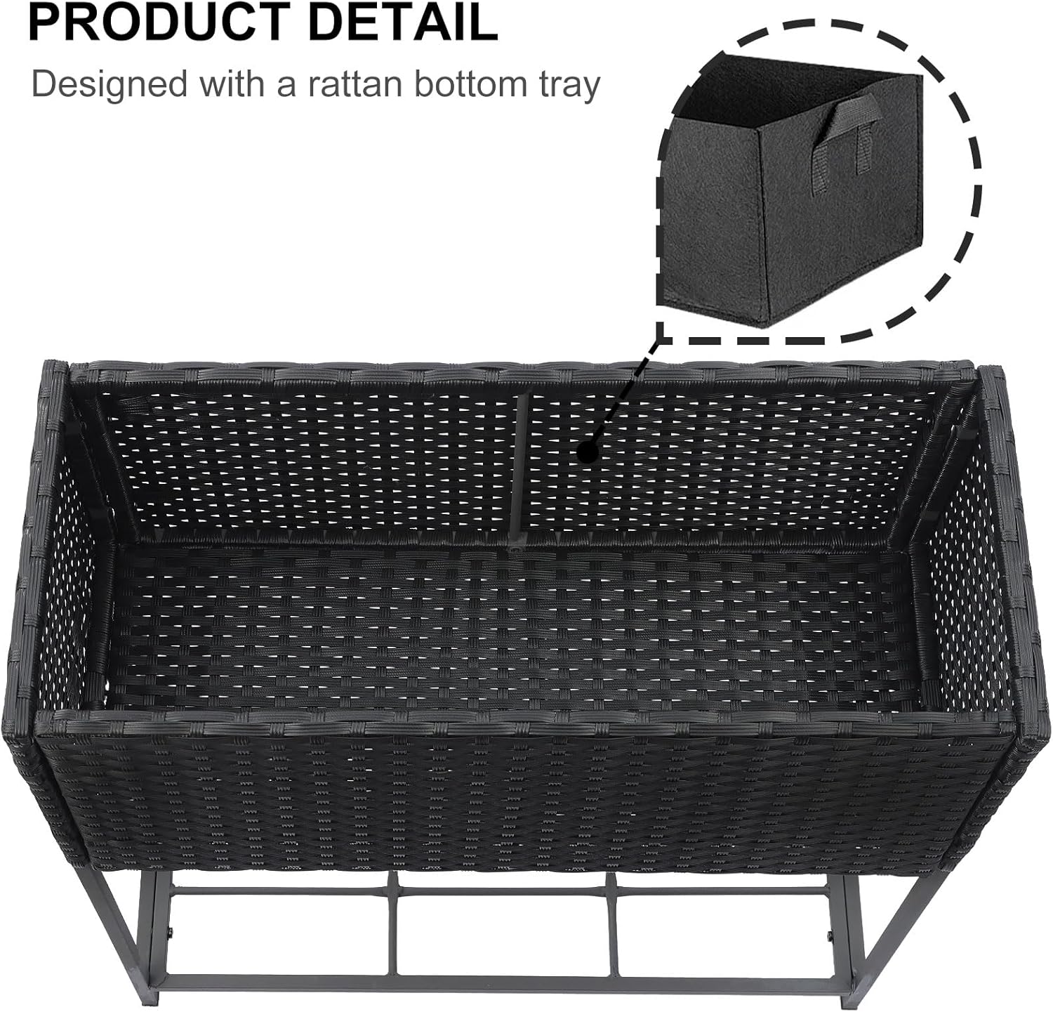 • Removable Liner: Each planter box comes with a nonwoven fabric liner (measures 26.5 x 11 x 10 inch) that separates wicker from the soil. Keep planter in excellent condition to prevent weeds and other invasive species from interfering with plant growth.