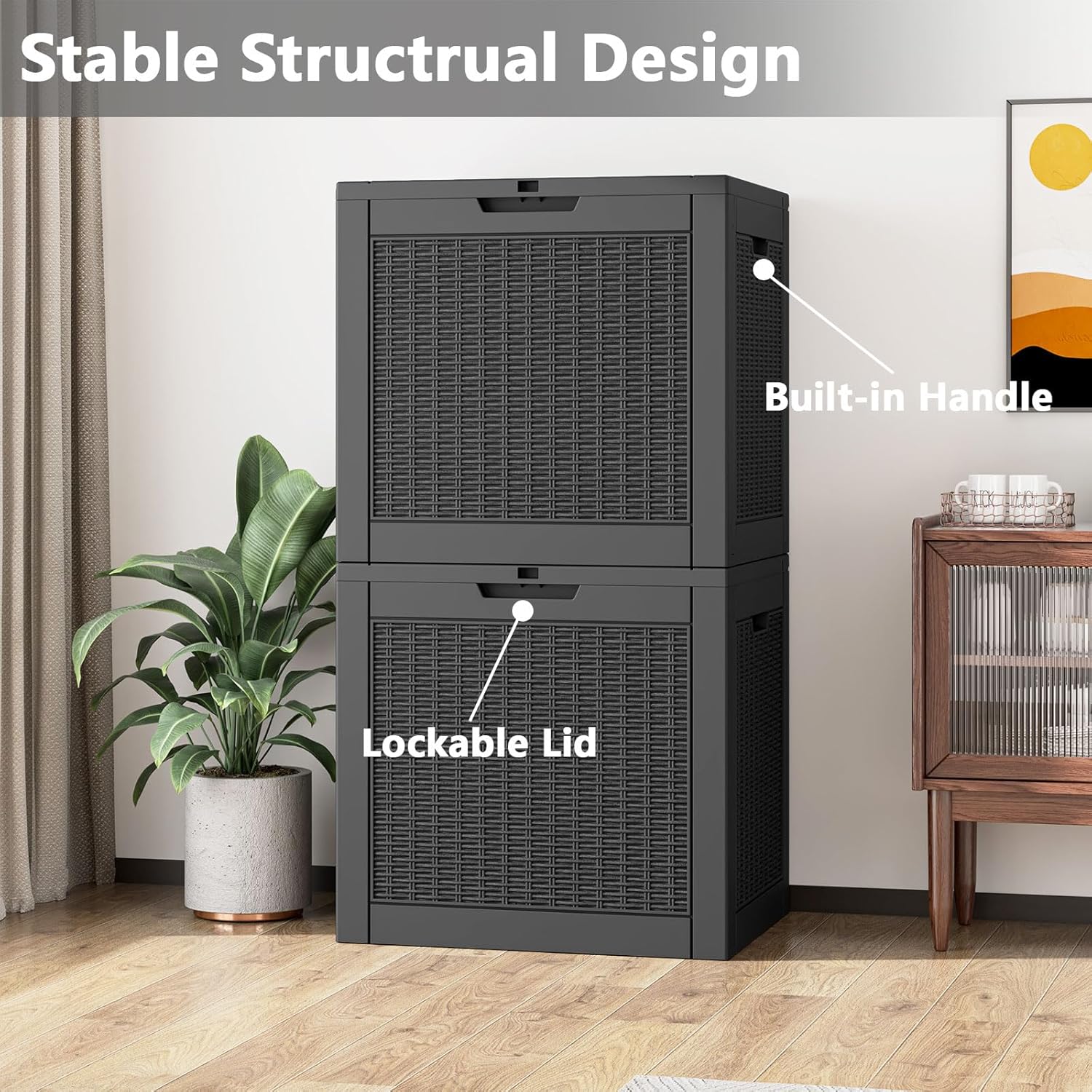 • WATERPROOF AND UV PROTECTION W - Crafted from durable resin material, this outdoor storage box is designed to withstand various weather conditions. It is waterproof, fade-resistant, and resistant to bending or breaking due to prolonged UV exposure, ensuring long-lasting use.