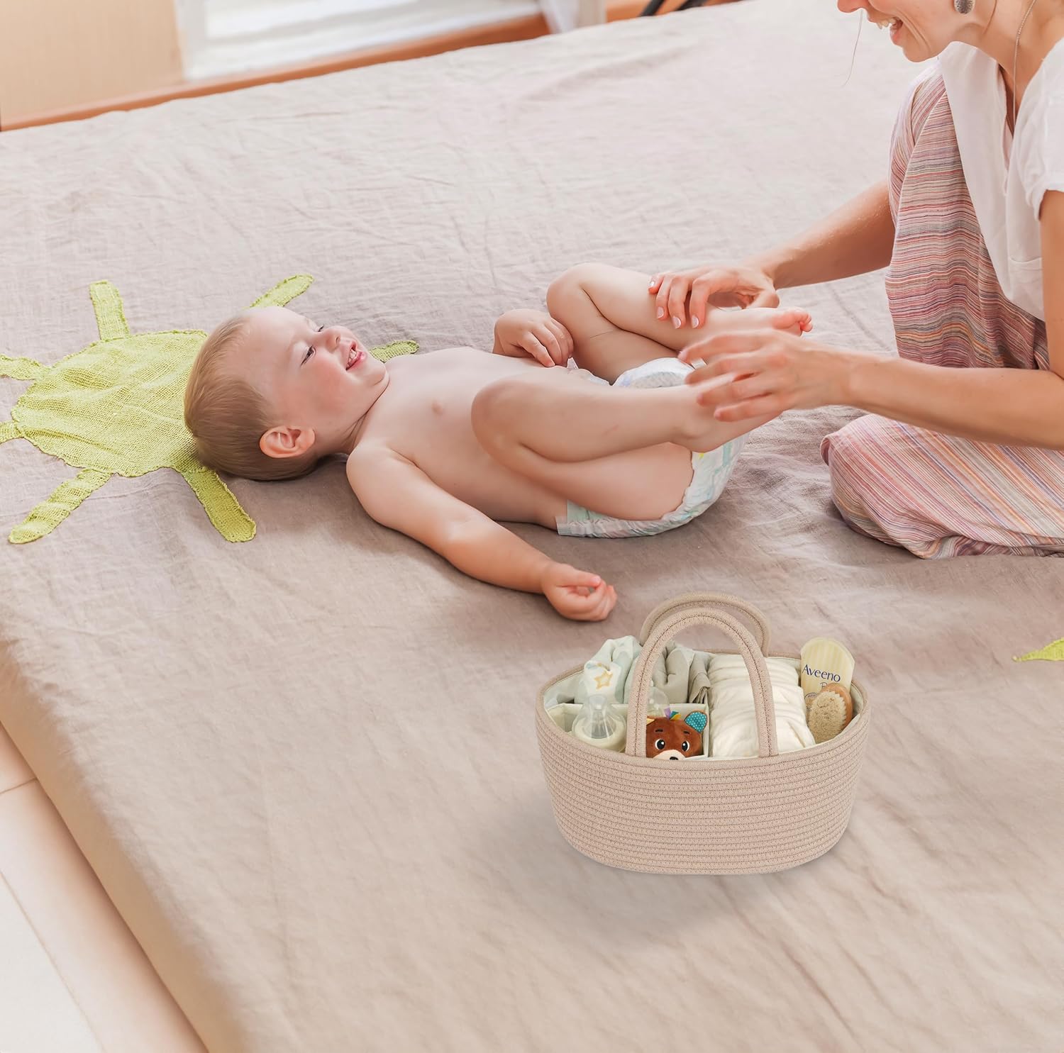 • Flexible and Portable Diaper basket with removable divider: Featuring handles for effortless transportation, our diaper change caddy includes removable dividers for personalized organization. Adjust the internal layout as needed to accommodate various baby items. Move seamlessly from room to room or take diaper organizer caddy on the go for convenient access to baby essentials.