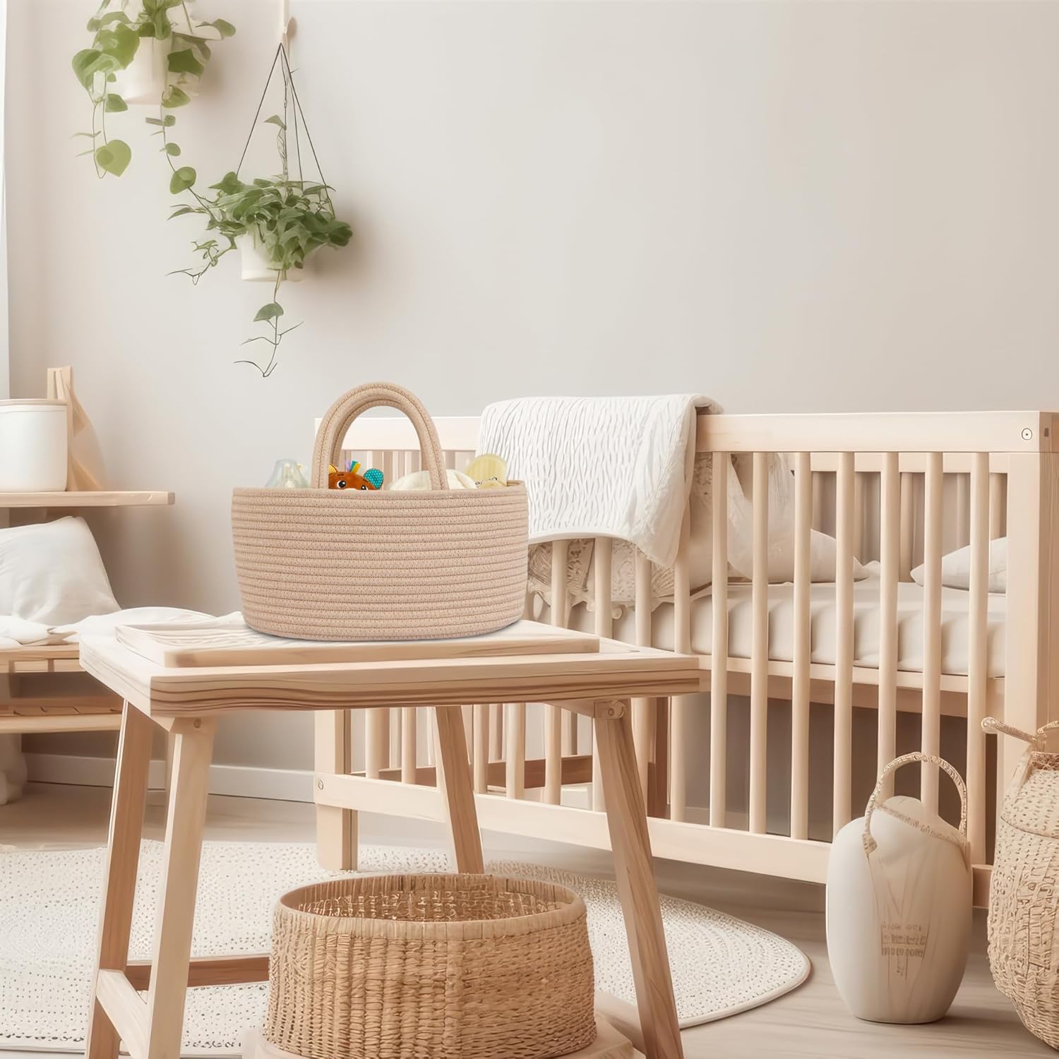 Diaper Caddy Organizer Cotton Rope Baby Basket Nursery Storage and Portable Tote Bag for Car Ideal Baby Shower Gifts and Registry Must-Have for Newborn Essentials light konjak