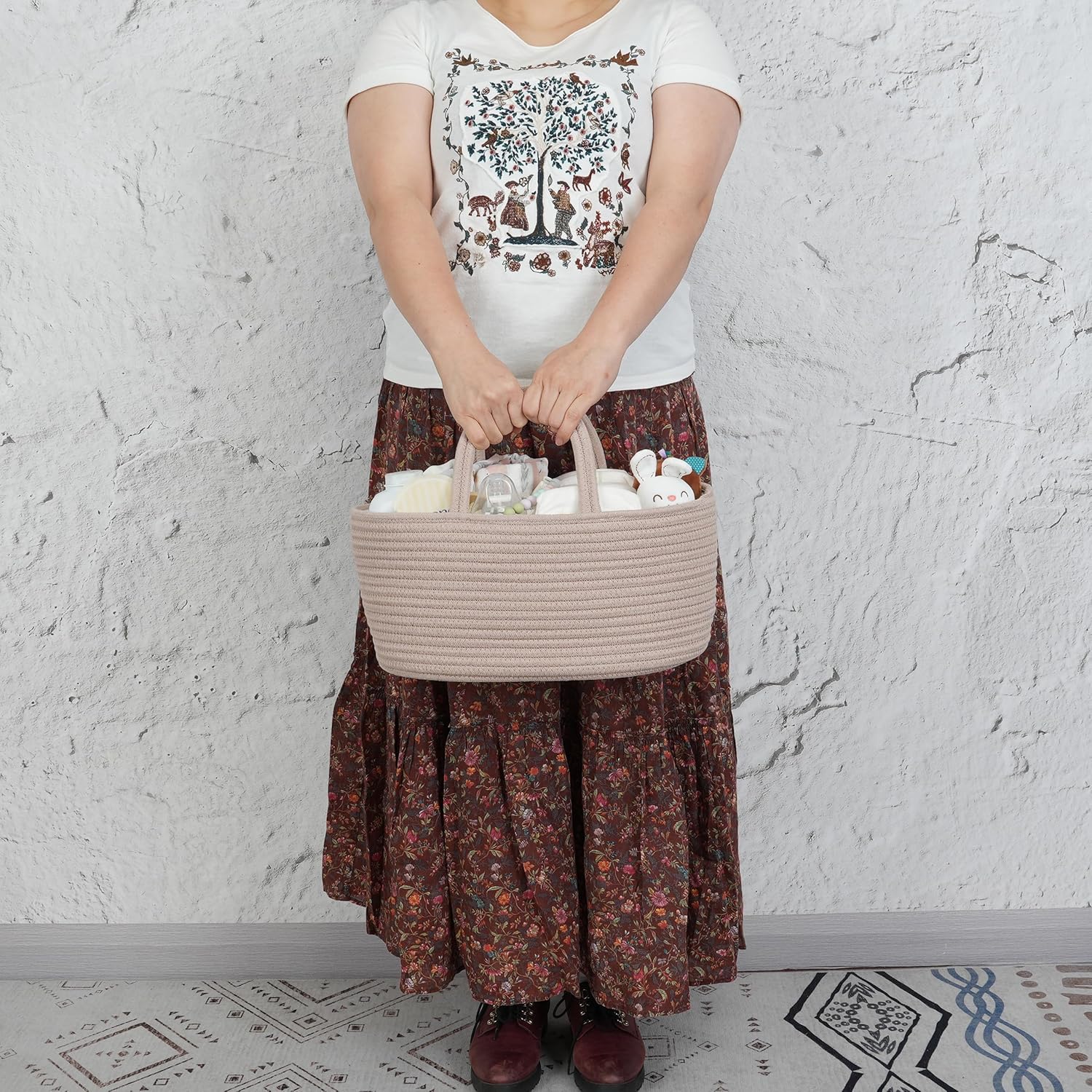 • Stylish and Practical-baby nursery bin or nursery basket: This baby caddy or diaper organizer is not limited to diaper duty. It seamlessly transitions from the nursery to the car, living room, or bathroom. Use it as a breast pump caddy organizer or a stylish baby car organizer. Its adaptability makes it an indispensable item for new parents.