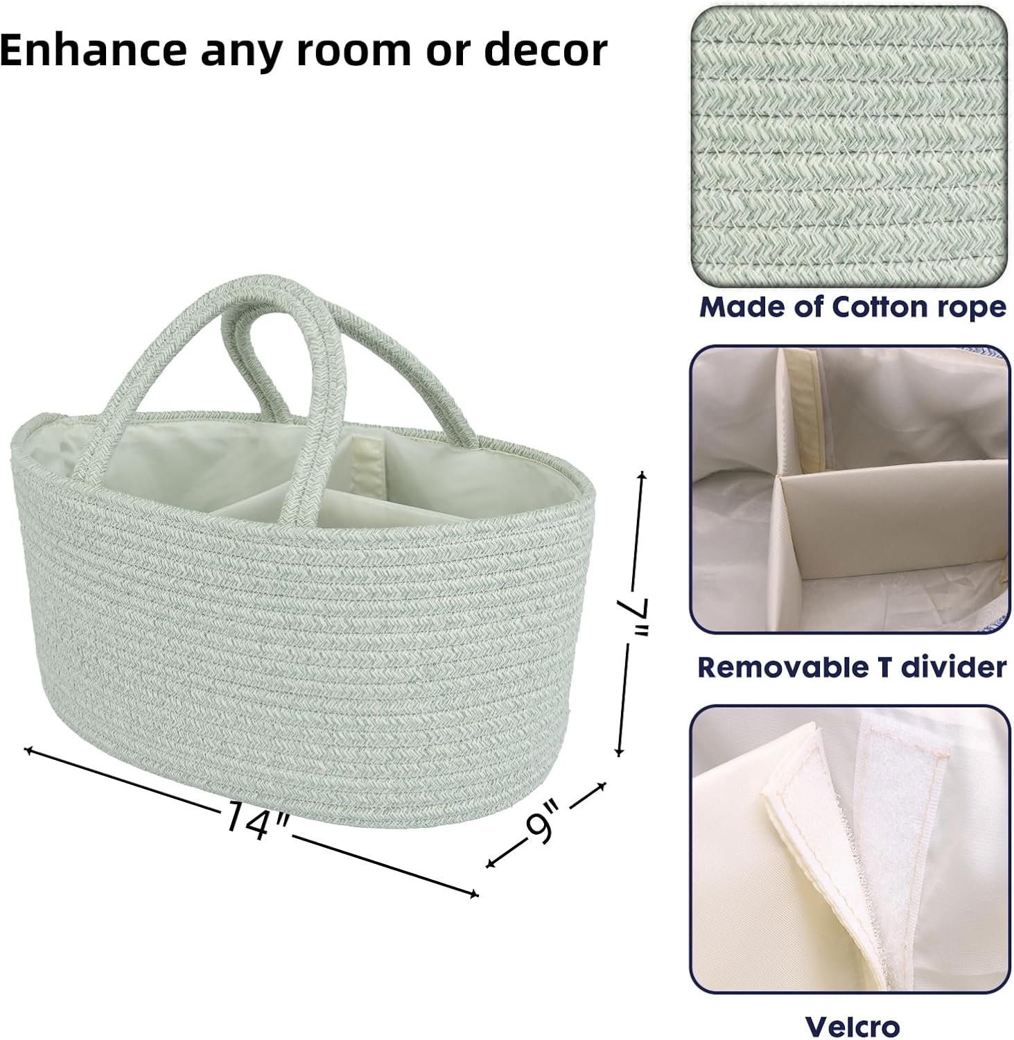 Diaper Caddy Organizer Cotton Rope Baby Basket Nursery Storage and Portable Tote Bag for Car Ideal Baby Shower Gifts and Registry Must-Have for Newborn Essentials light green